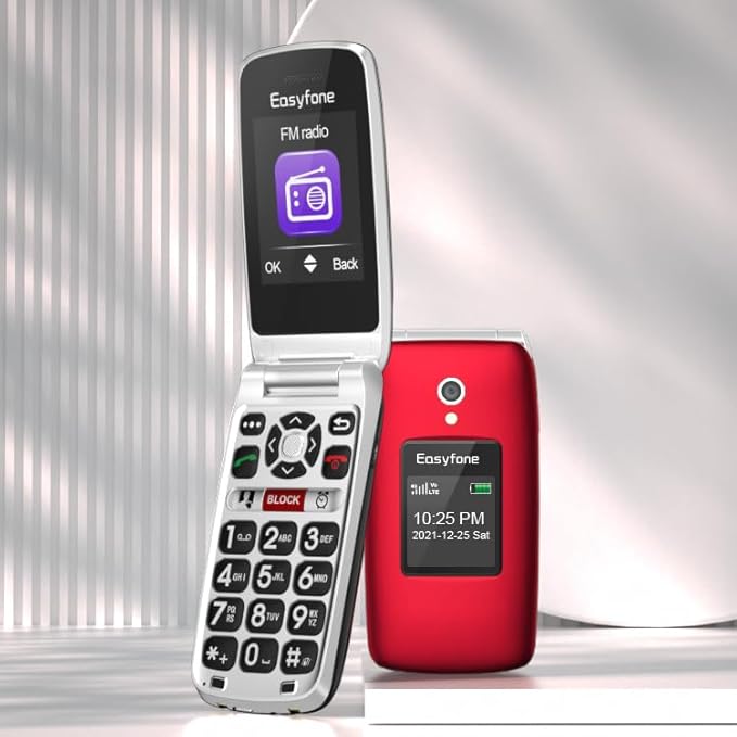 Easyfone Prime-A1 Pro 4G мобилен телефон за възрастни хора Сгъваем мобилен телефон без договор, големи бутони, функция за спешно повикване SOS, FM радио, 2.4-инчов HD двоен дисплей, мобилен телефон за възрастни хора