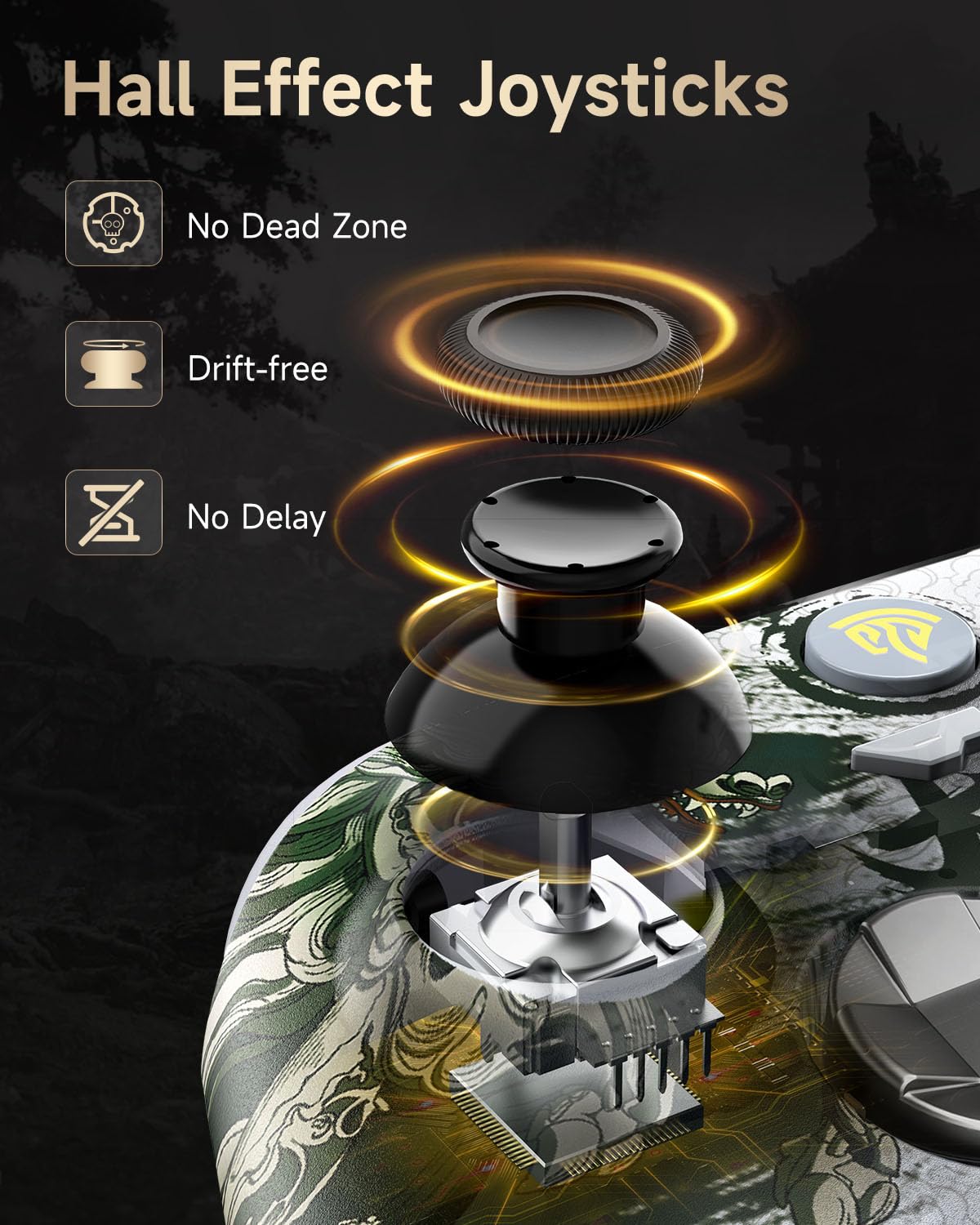 • Тригери и джойстици на Хол: двойните тригери и джойстици на Хол осигуряват по-прецизен контрол. Няма мъртва зона, няма дрейф.