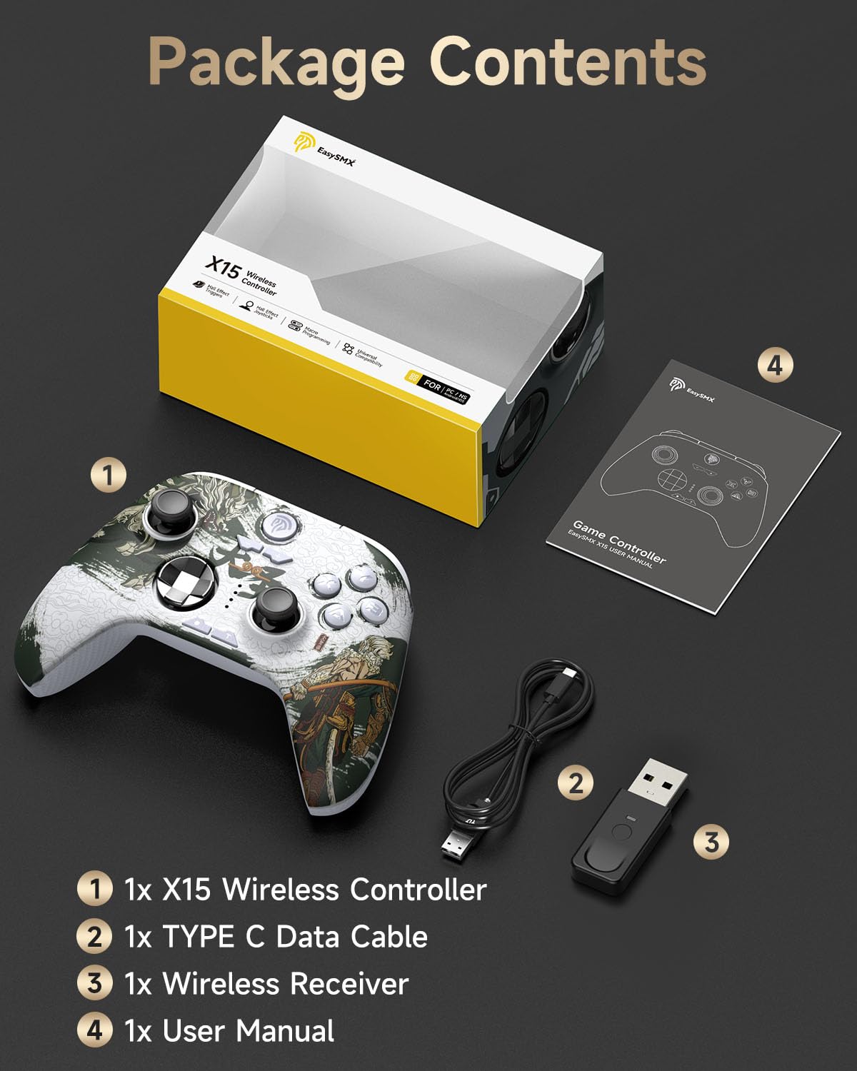 EasySMX X15 контролер за компютър, безжичен контролер със 7 RGB светлини, геймърски контролер с джойстик и спусък, Bluetooth контролер, съвместим с компютър/Switch/мобилен телефон/таблет - Wukong