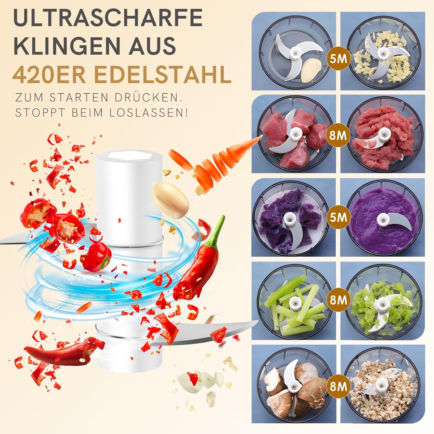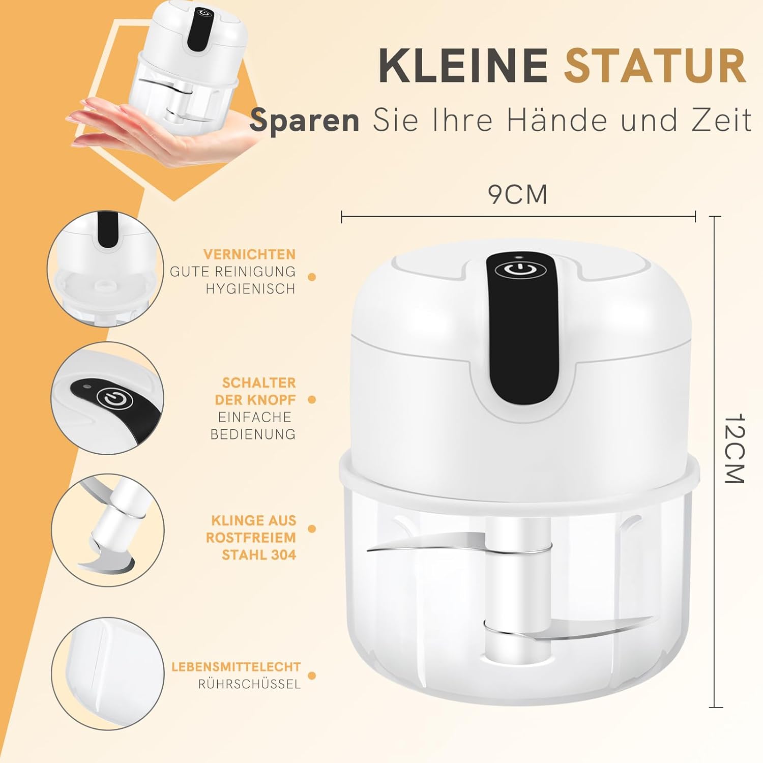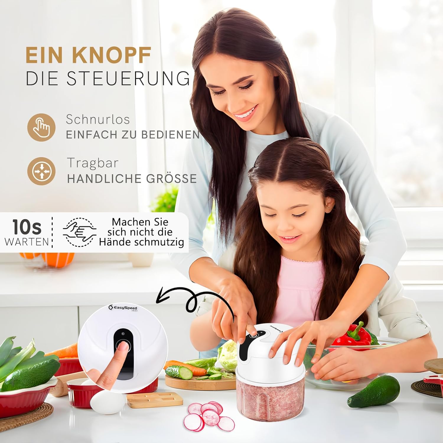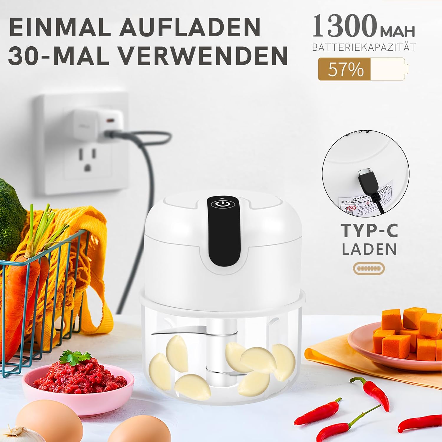 EASYSPEED Електрическа мини чопър, 250 мл, чопър за зеленчуци, USB Type-C зареждане, преносим чопър за месо, бебешка храна, за къмпинг, бял