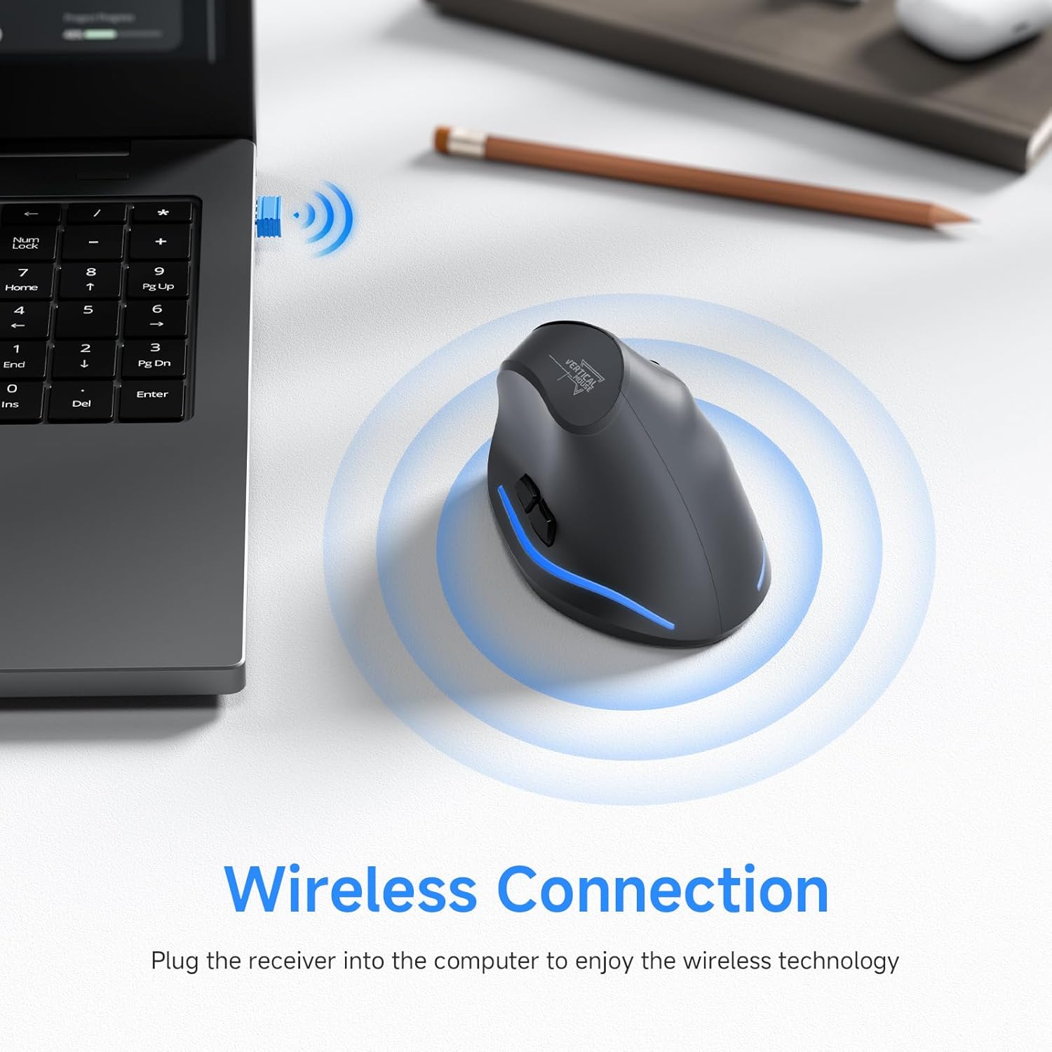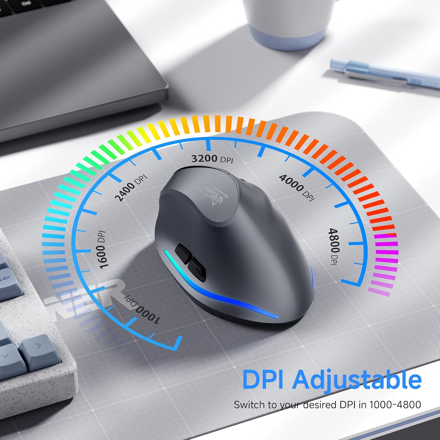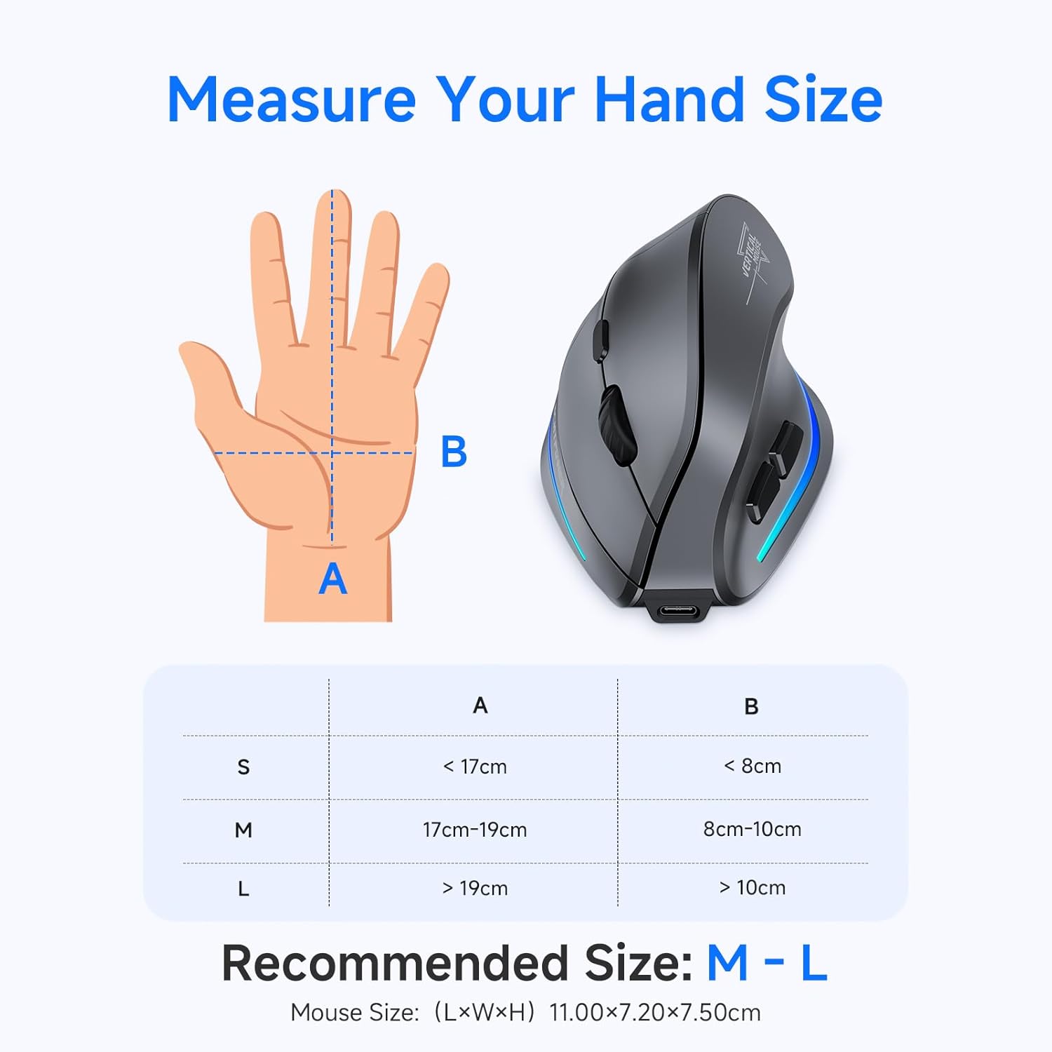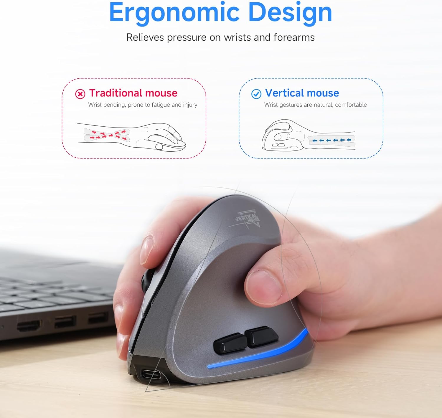 • ♥ УНИКАЛНА ФОРМА: Меката и удобна ергономична мишка е проектирана да пасва в ръката ви. Уникалната ѝ вертикална форма намалява мускулното напрежение в ръката ви и пасва идеално на много форми и размери ръце. Текстурираната гумирана повърхност на поставката за крака осигурява допълнителен комфорт.