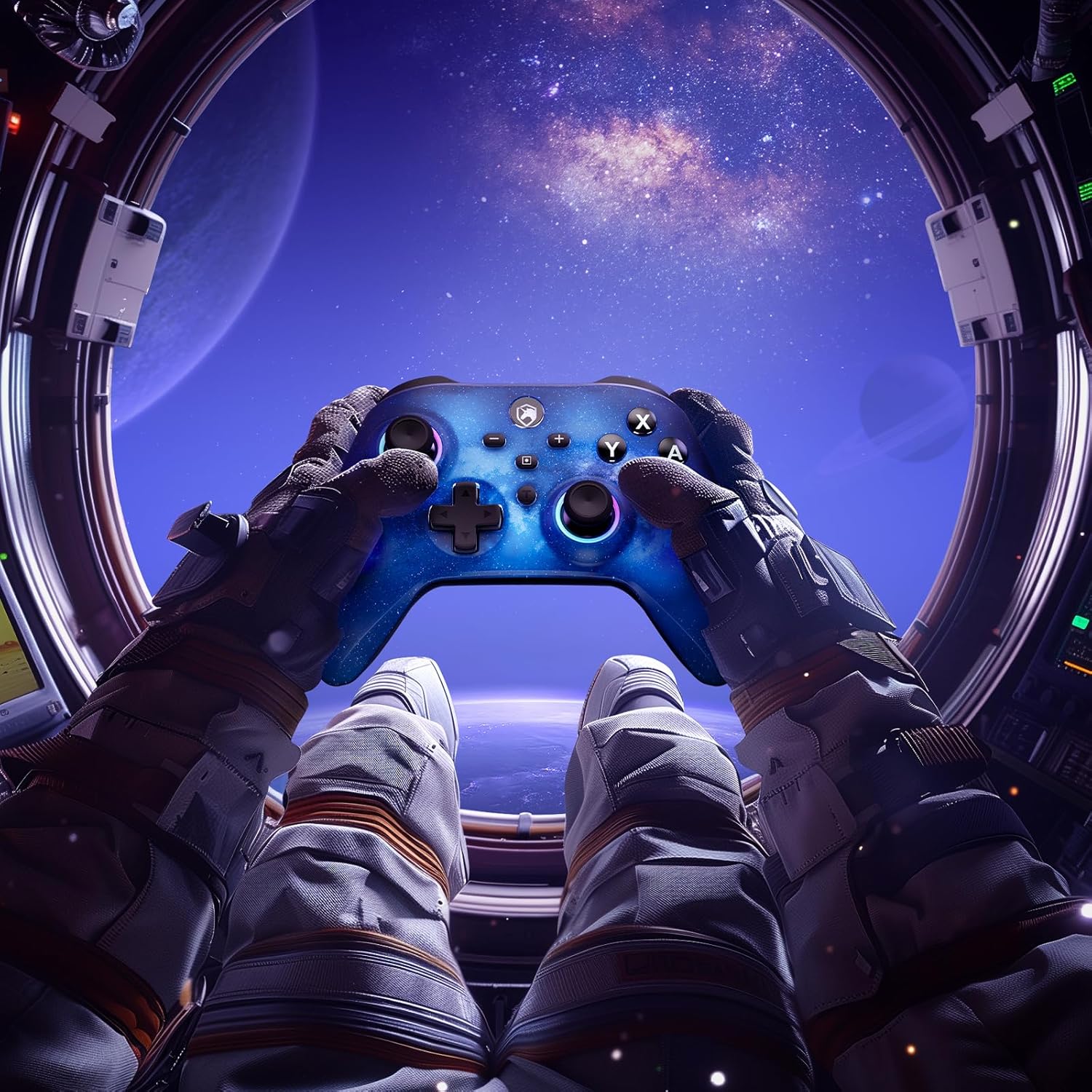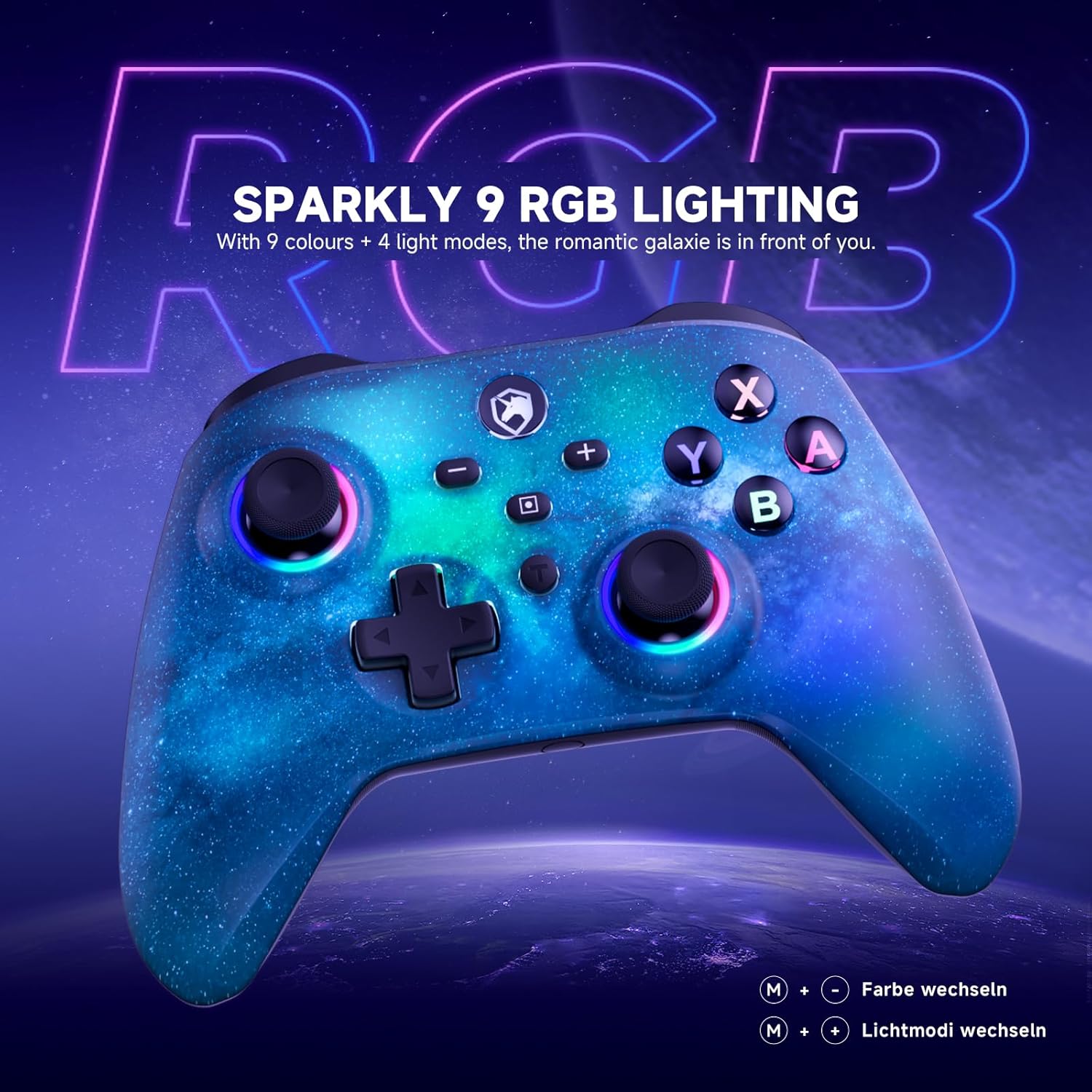 • Контролер с превключватели и светодиоди: ECHTPower контролерът с превключватели е специално проектиран за по-добро гейминг изживяване. Вградените светодиоди на двата джойстика и бутоните A/B/X/Y ви предлагат по-добра гейминг атмосфера. Джойстиците с пръстеновидно осветление са оградени от 9 цветни светлини и предлагат 3 режима на осветление, като можете да променяте цвета според настроението или игрите. Това е незаменим аксесоар за семейства, приятели на партита или вечер.