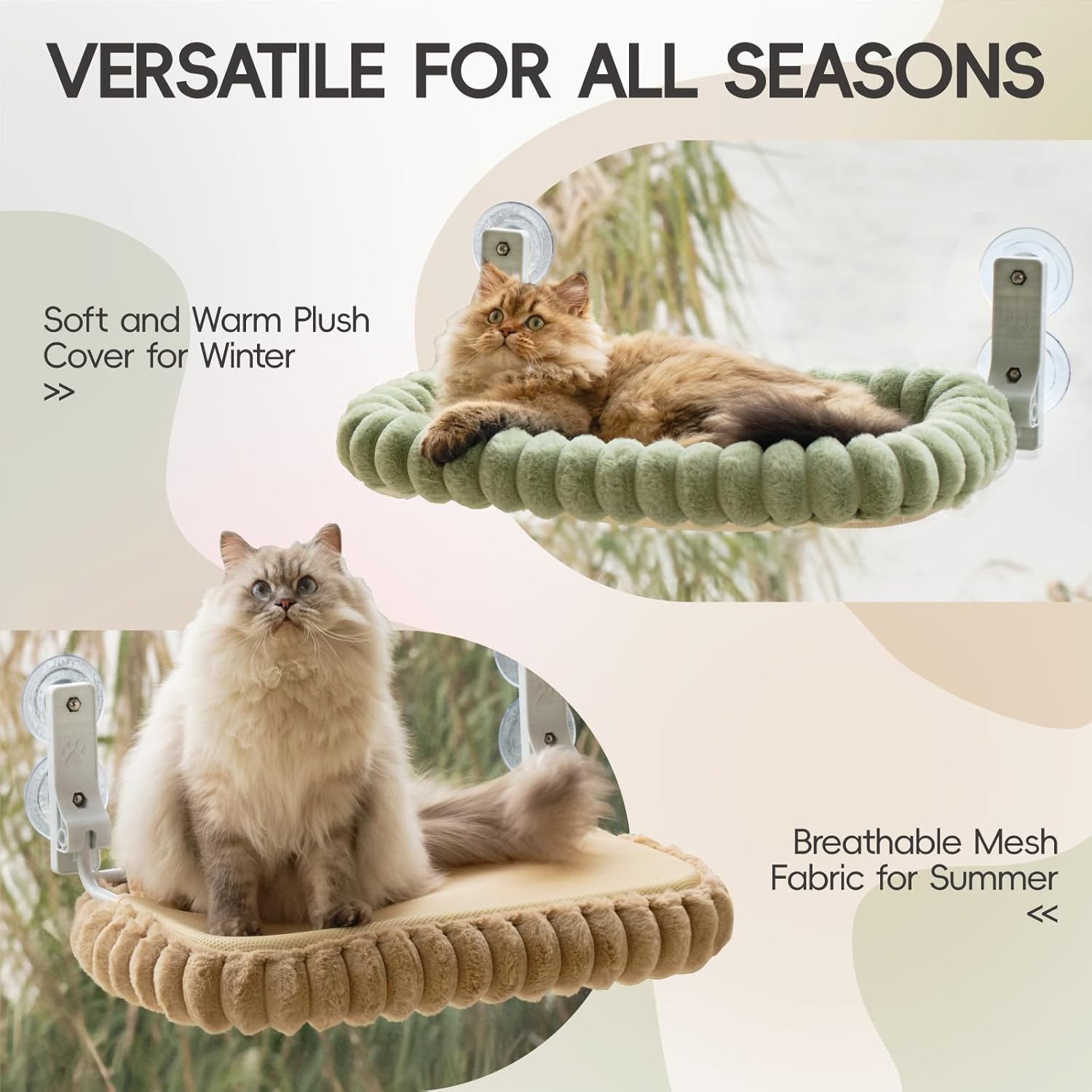 EDAGNY Голям котешки хамак за прозорец, мек, с подвижен обръщаем калъф - Котешки хамак за прозорец със здрава стоманена рамка, котешко легло с 4 здрави вендузи, издържа до 18 кг, зелен L