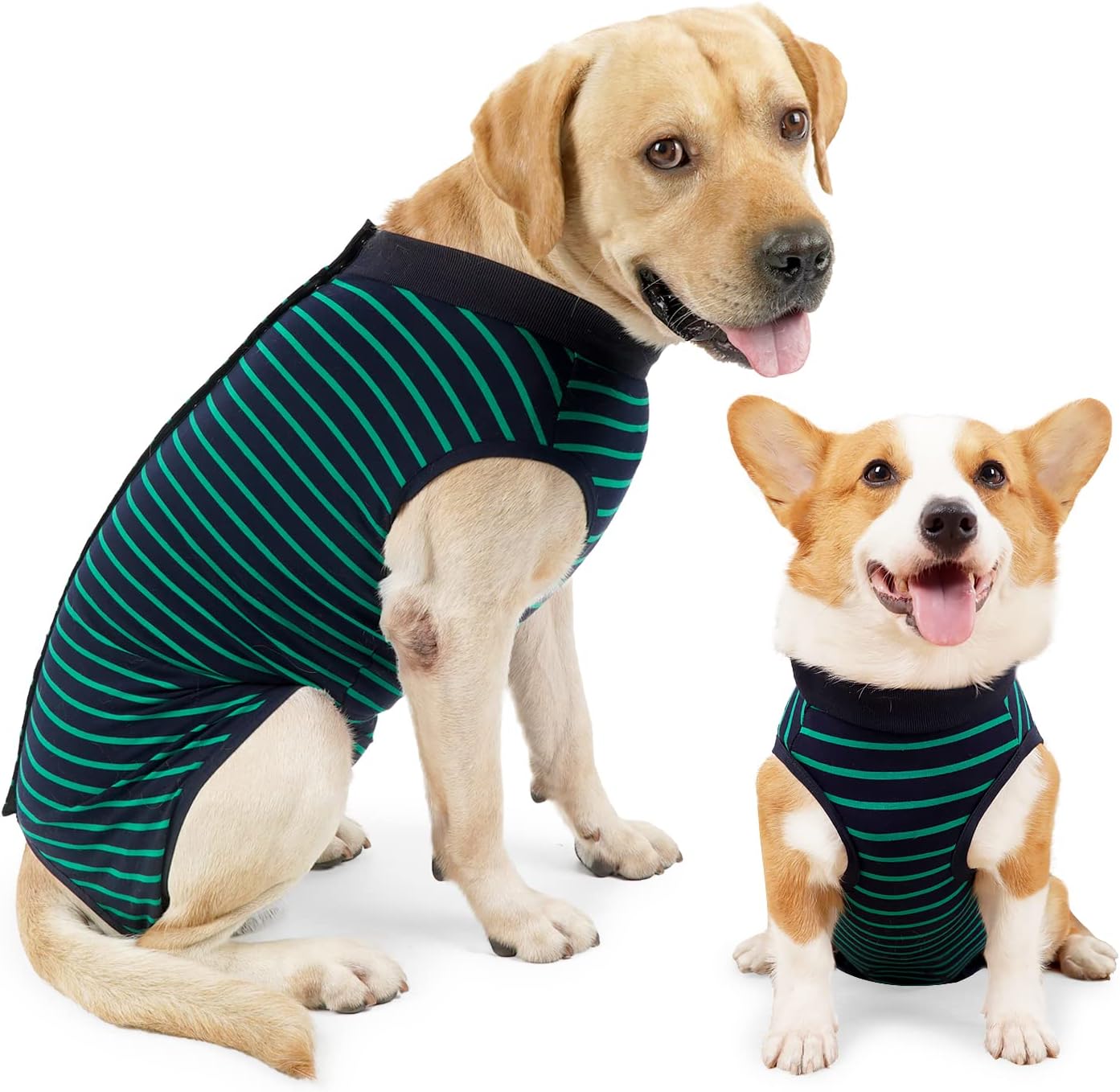 Едноделен костюм за кучета, дишащ, за хирургични коремни рани и защита на кожата, конус против облизване, алтернатива на електронна каишка след операция