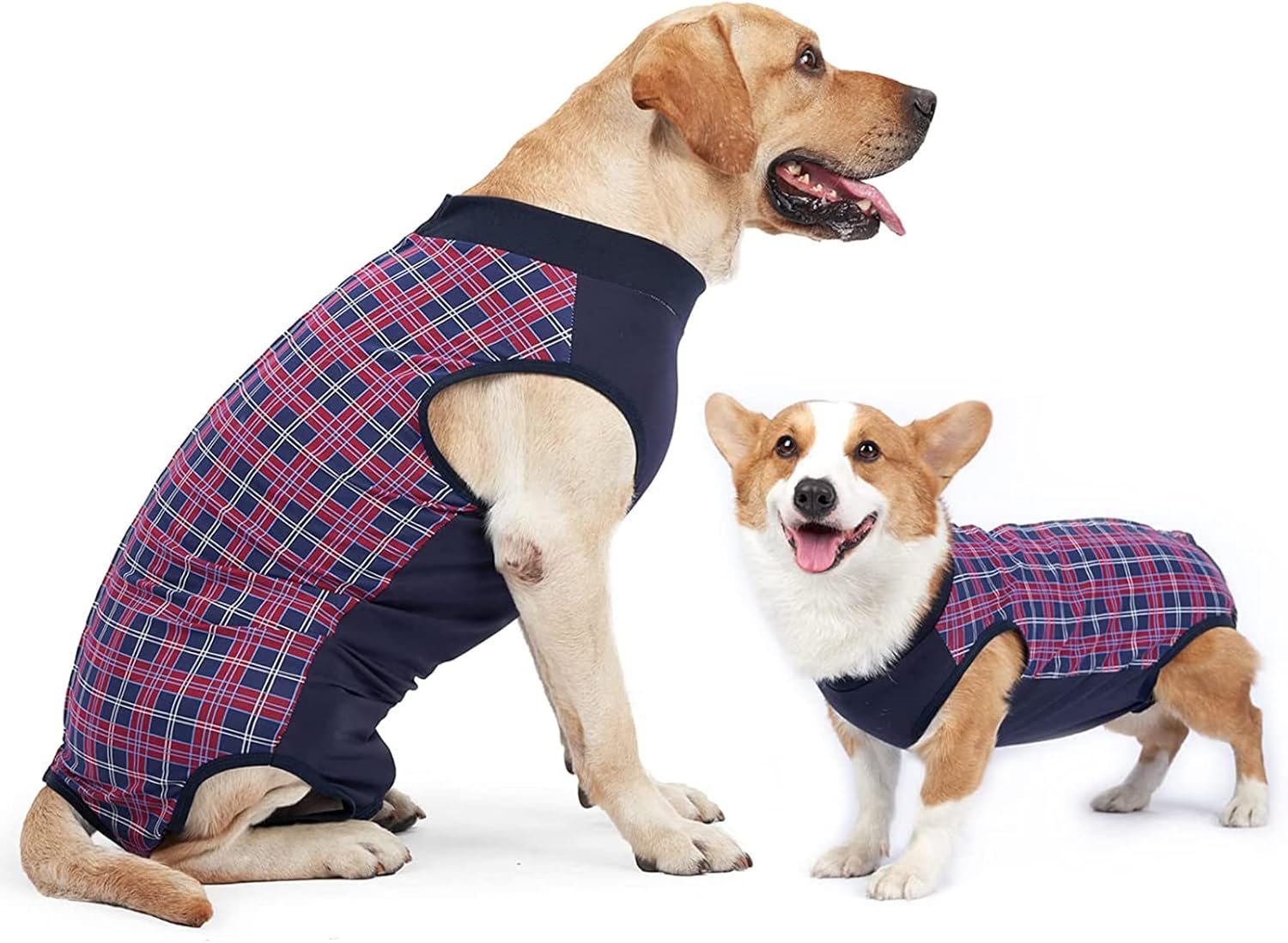 Едноделен костюм за кучета, дишащ, за хирургични коремни рани и защита на кожата, конус против облизване, алтернатива на електронна каишка след операция