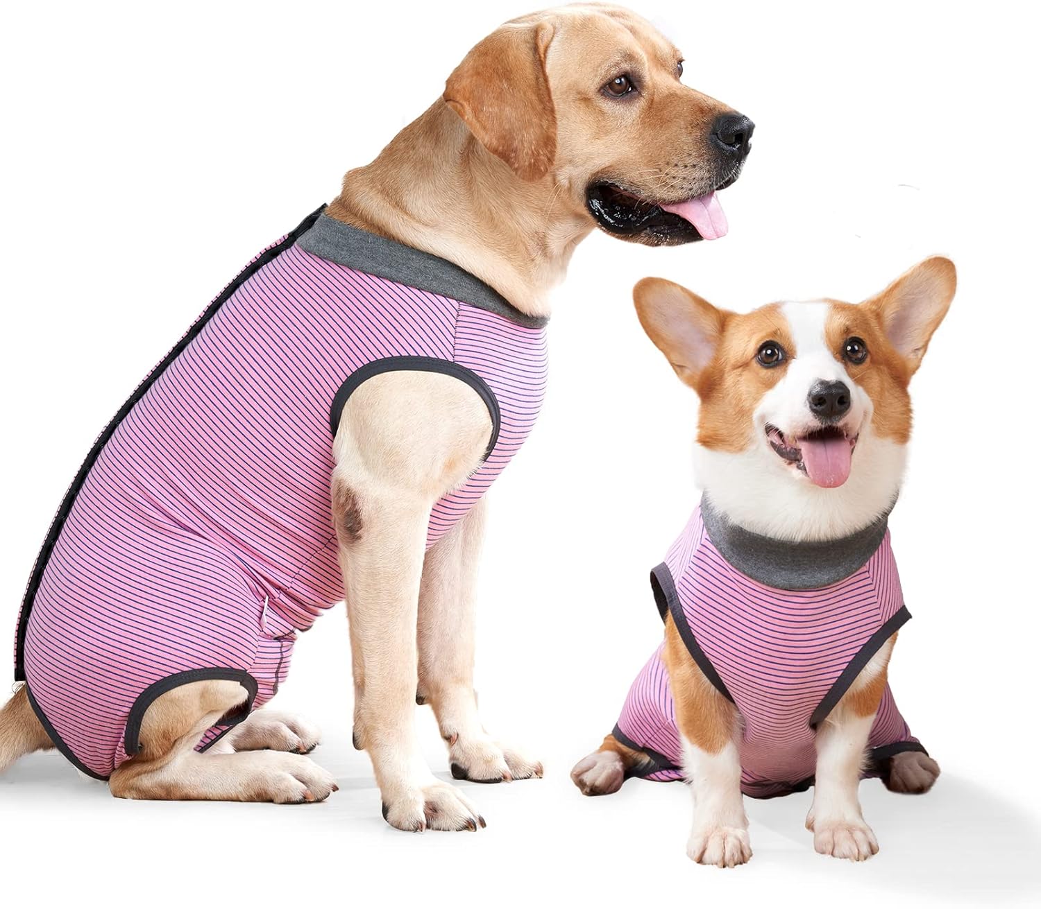 Едноделен костюм за кучета, дишащ, за хирургични коремни рани и защита на кожата, конус против облизване, алтернатива на електронна каишка след операция