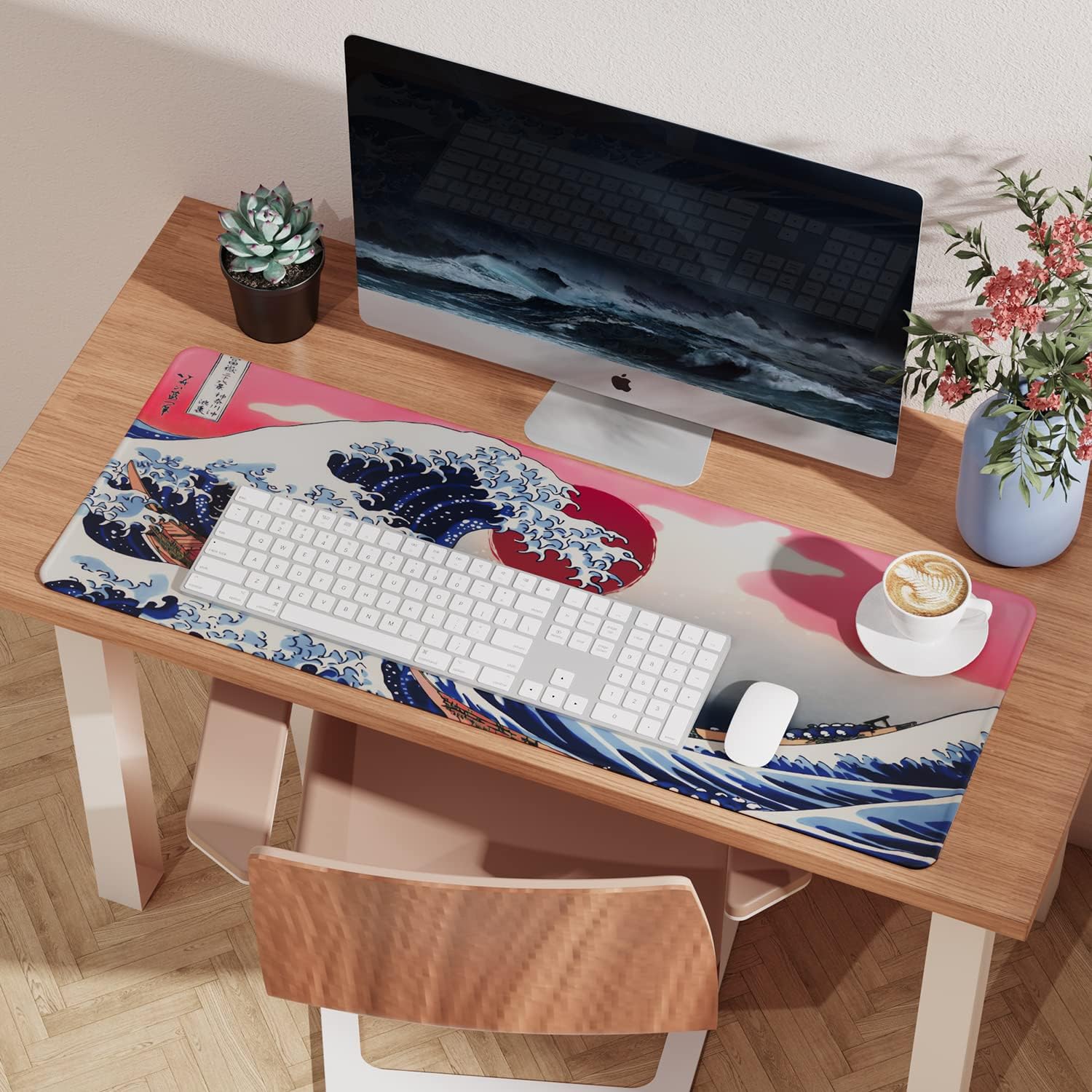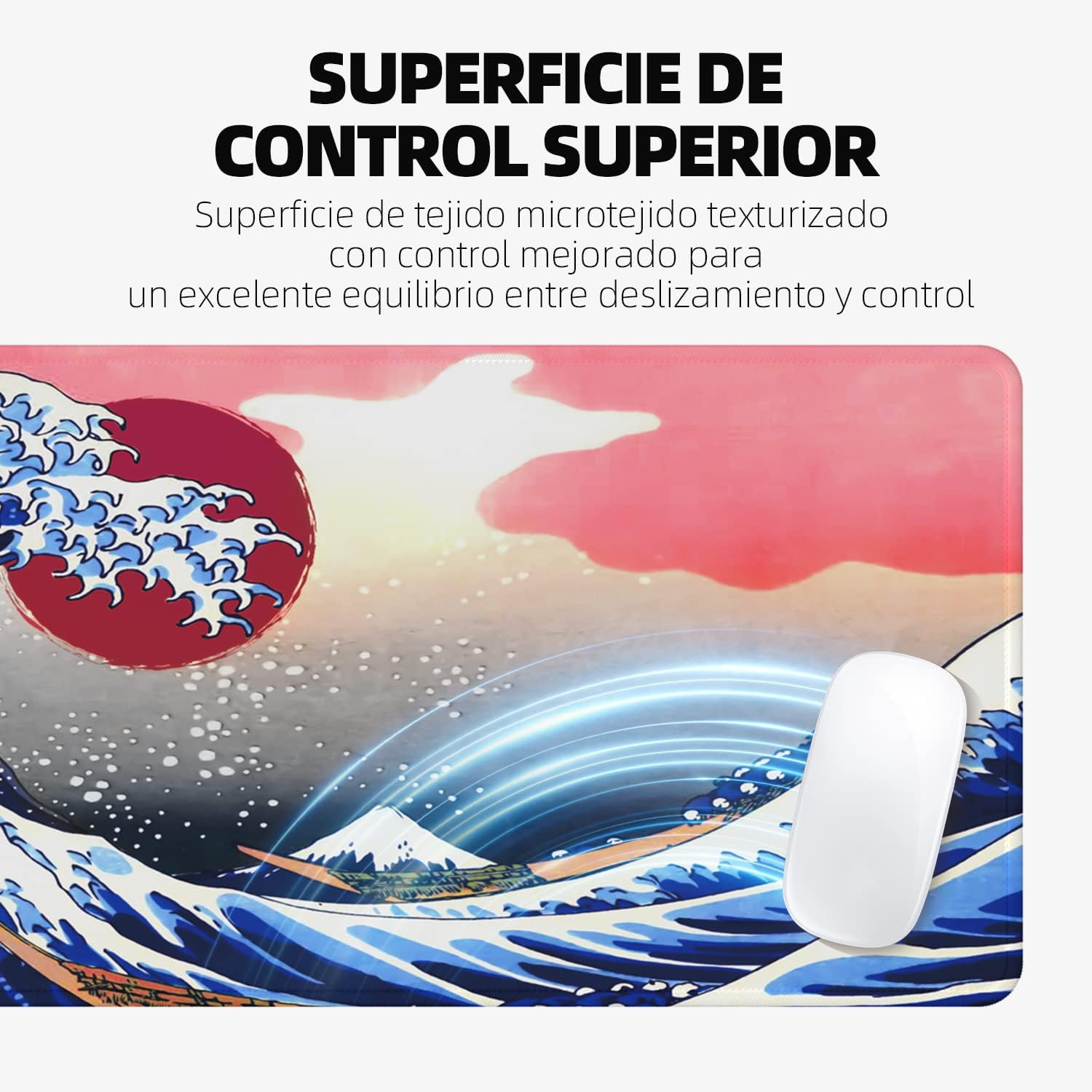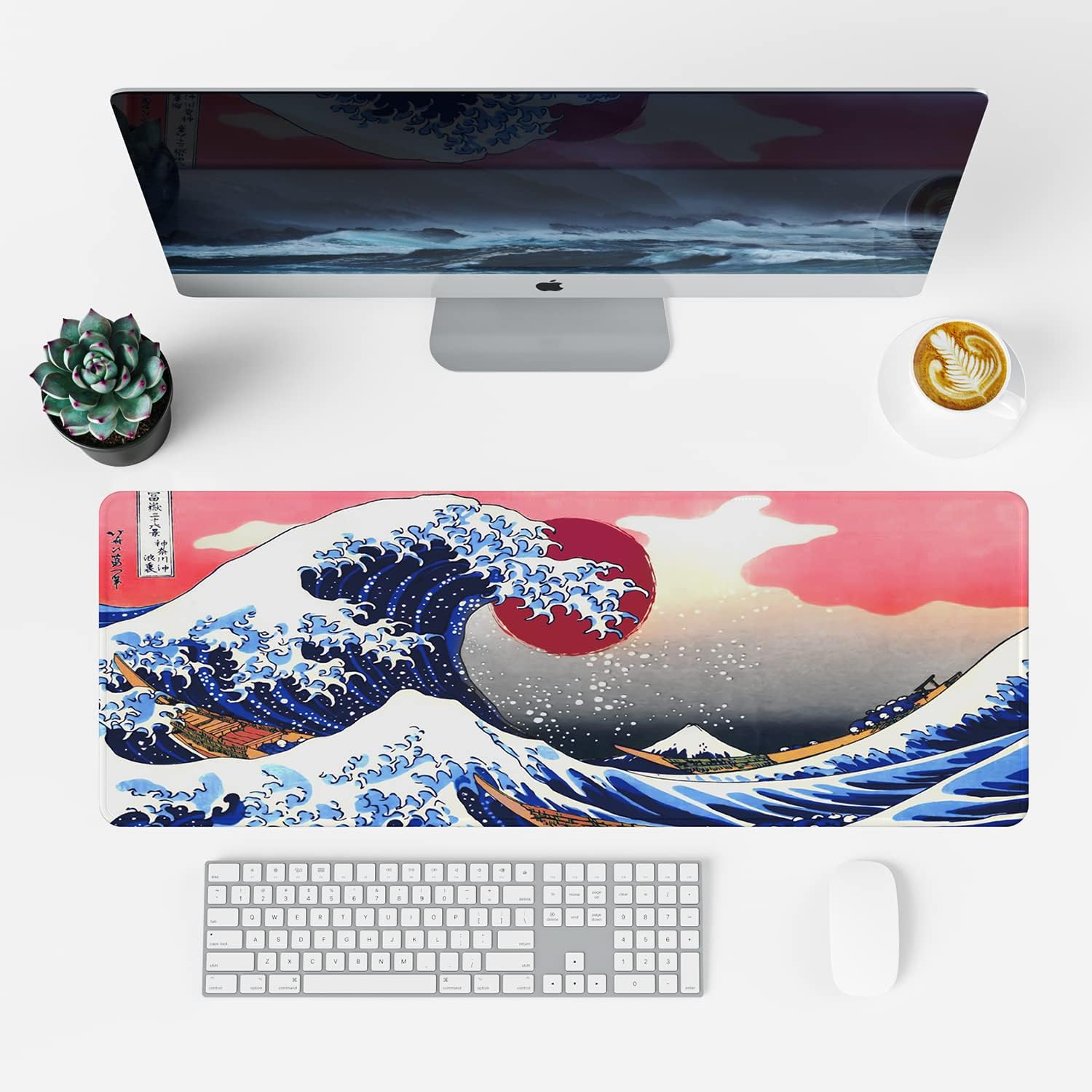 EFISH Подложка за мишка Japan Art Kanagawa Surfing (800 × 300 × 3 мм) Удължена голяма подложка за мишка, подложка за бюро с шевове, неплъзгаща се гумена основа, подложка за клавиатура, геймърска подложка за мишка XL