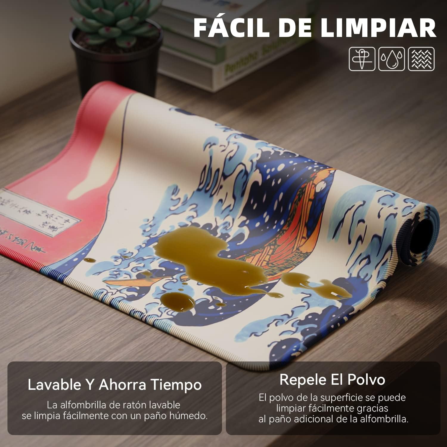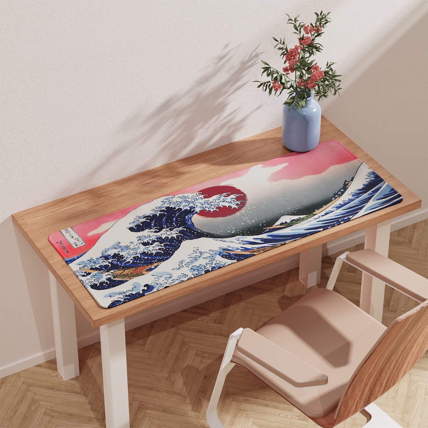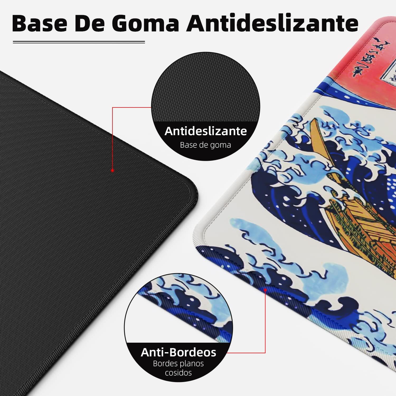 EFISH Подложка за мишка Japan Art Kanagawa Surfing (800 × 300 × 3 мм) Удължена голяма подложка за мишка, подложка за бюро с шевове, неплъзгаща се гумена основа, подложка за клавиатура, геймърска подложка за мишка XL