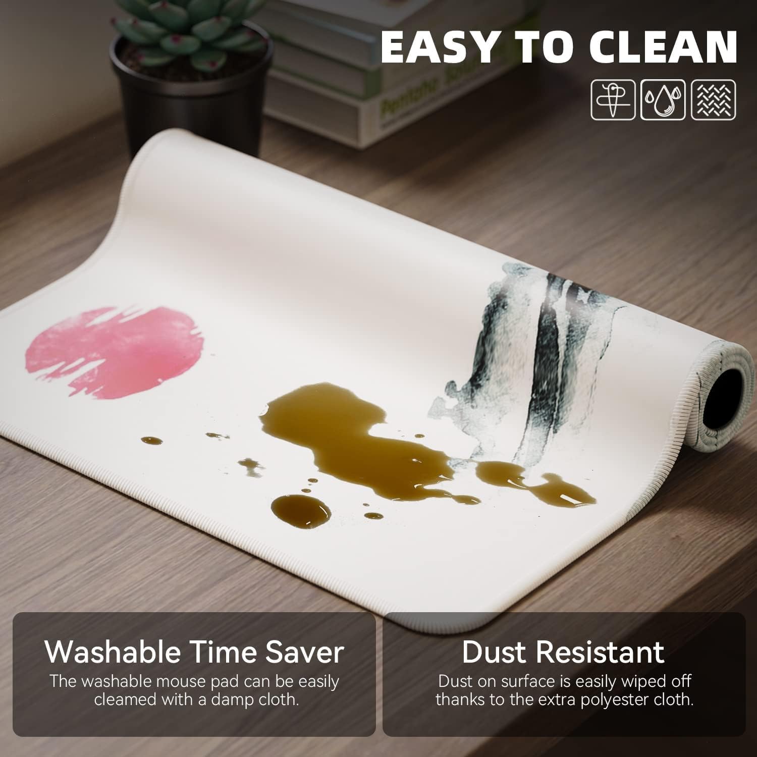 EFISH Подложка за мишка с цвят на японска череша, бяла (800 × 300 × 3 мм), удължена, голяма, подложка за бюро, зашити ръбове, неплъзгаща се гумена основа, геймърска подложка за мишка XL