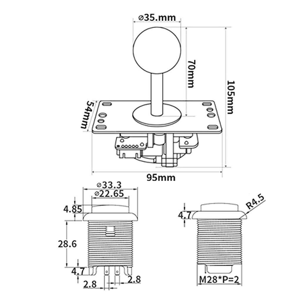 5. Диаметър на отвора за джойстика: 24 мм, диаметър на големия отвор за копчета: 28-30 мм