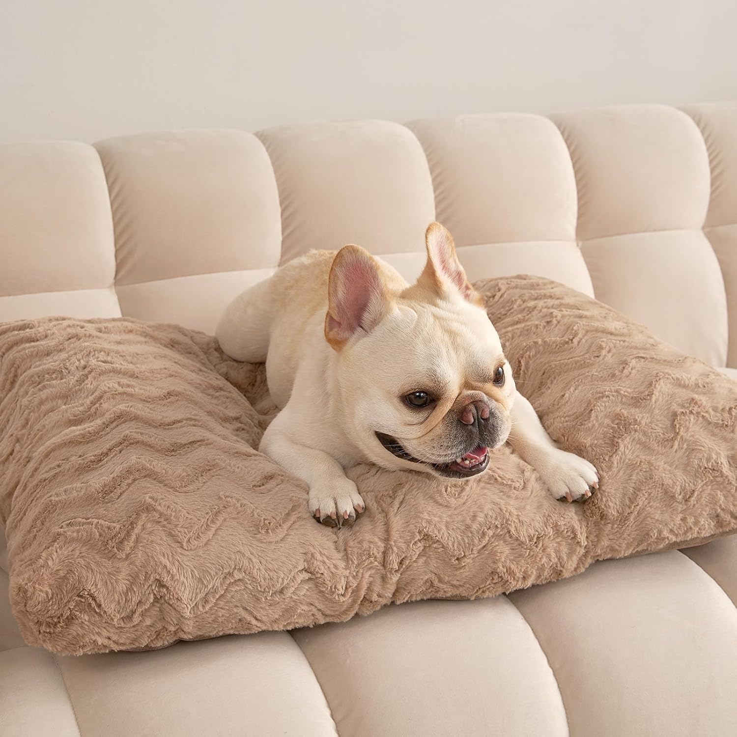 EHEYCIGA Кучешко легло, Средни кучета, Може да се пере, 73 x 53 см, Пухкава възглавница за малки, средни кучета, Мека двустранна постелка за кучета с изкуствена кожа и изкуствен лен, Кафява