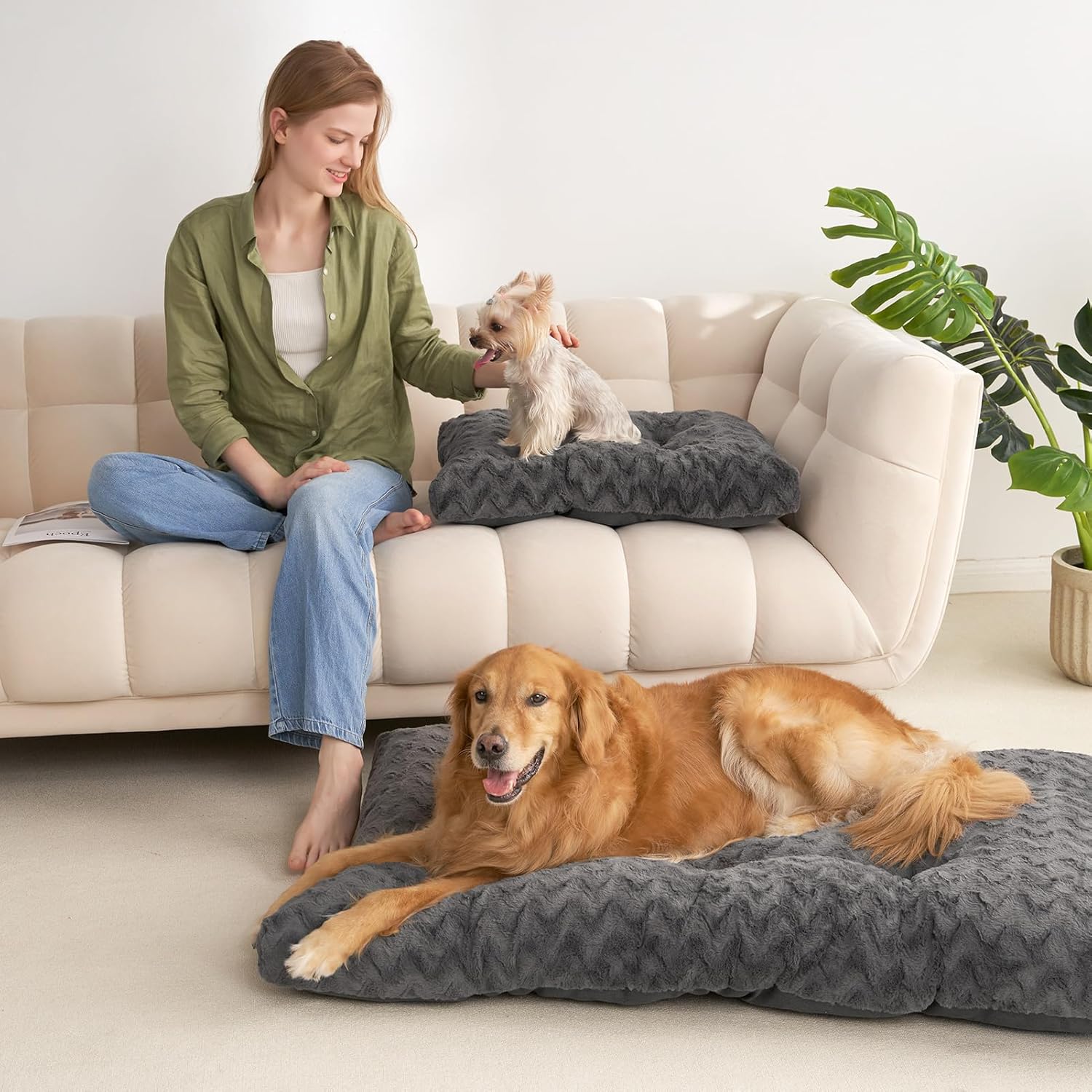 • Луксозен пълнеж и опора: Нашата възглавница за кучета с висококачествен полиестерен пълнеж е закрепена с 4 точки на закрепване и осигурява еластична, издръжлива фиксация с дълготрайна размерна стабилност. Тя се адаптира прецизно към контурите на тялото на кучетата, облекчава ставите и костите и ефективно помага за облекчаване на болките в ставите.