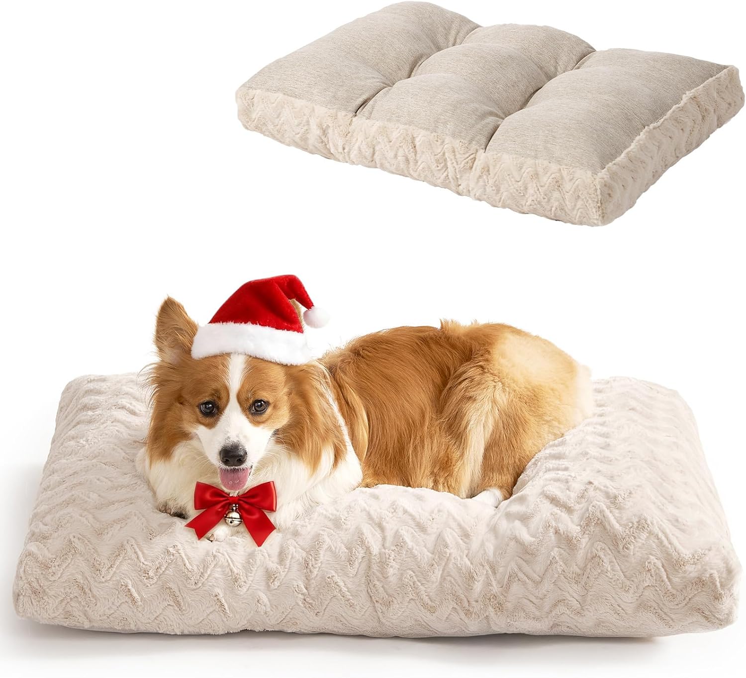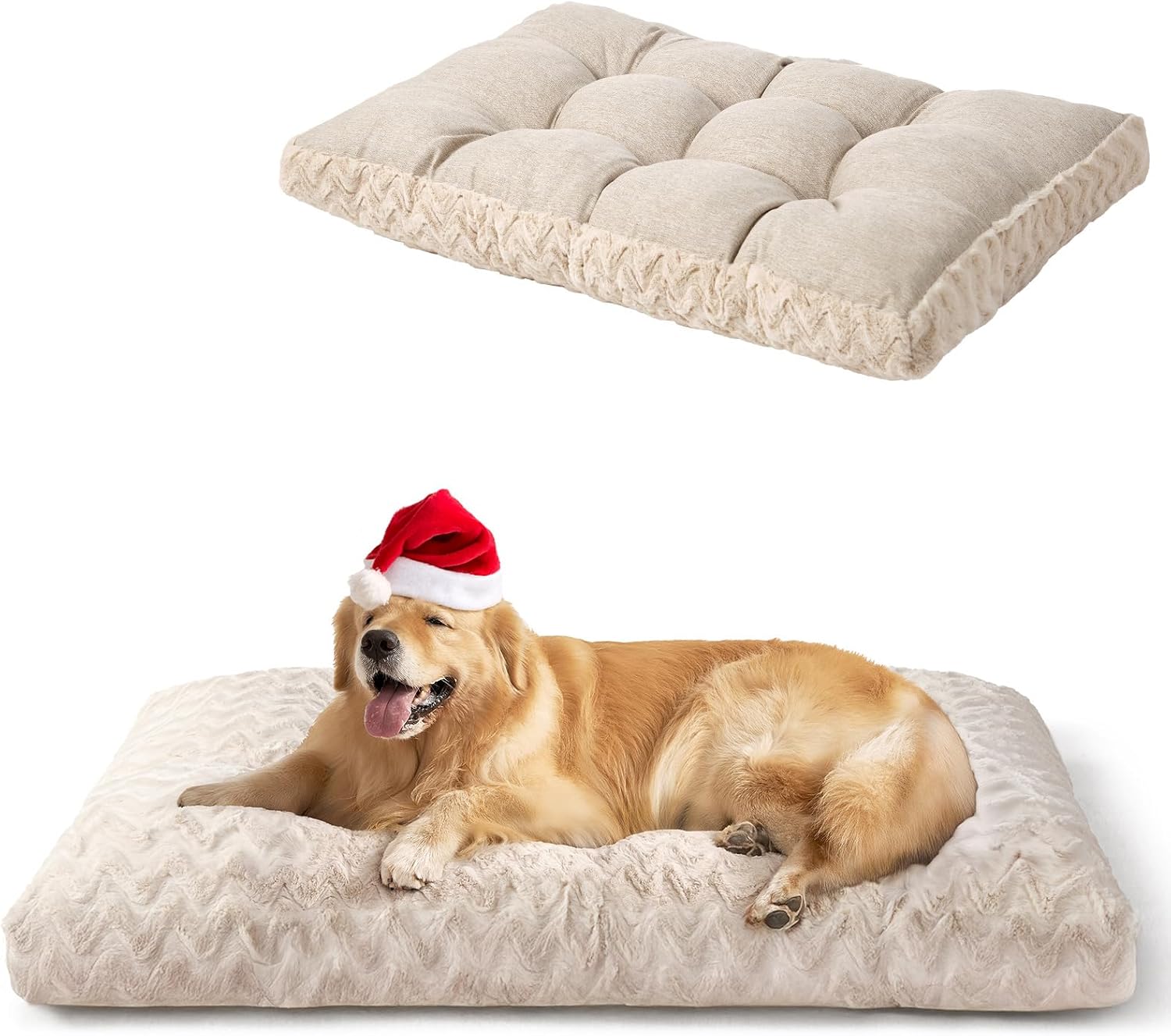 EHEYCIGA Кучешко легло за големи кучета, Може да се пере, 119 x 73 см, XXL възглавница за кучета, Пухкава за големи кучета, Мека двустранна постелка за кучета с изкуствена кожа и изкуствен лен, Бежово