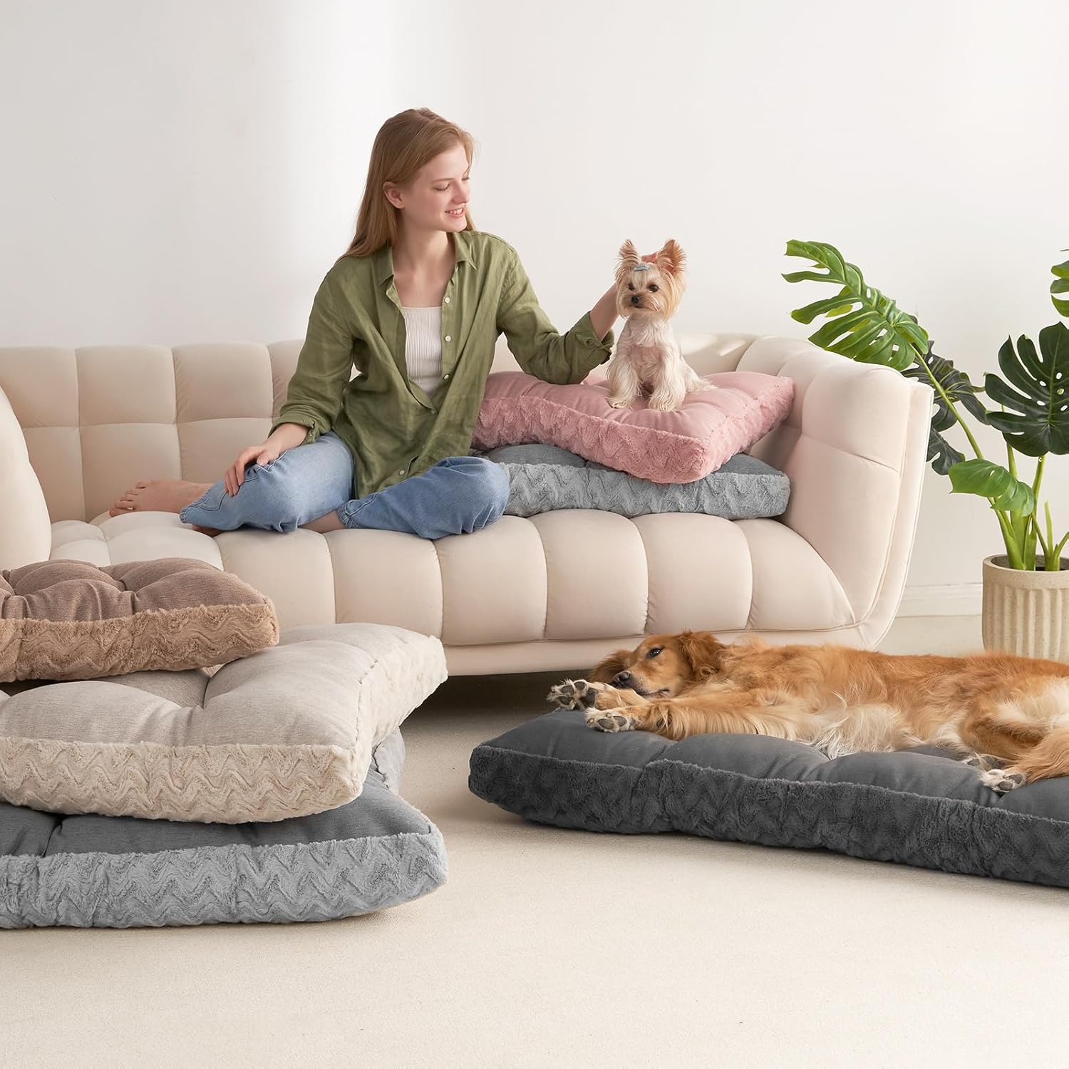 • Луксозен пълнеж и опора: Нашата възглавница за кучета с висококачествен полиестерен пълнеж е закрепена с 4 точки на закрепване и осигурява еластична, издръжлива фиксация с дълготрайна размерна стабилност. Тя се адаптира прецизно към контурите на тялото на кучетата, облекчава ставите и костите и ефективно помага за облекчаване на болките в ставите.