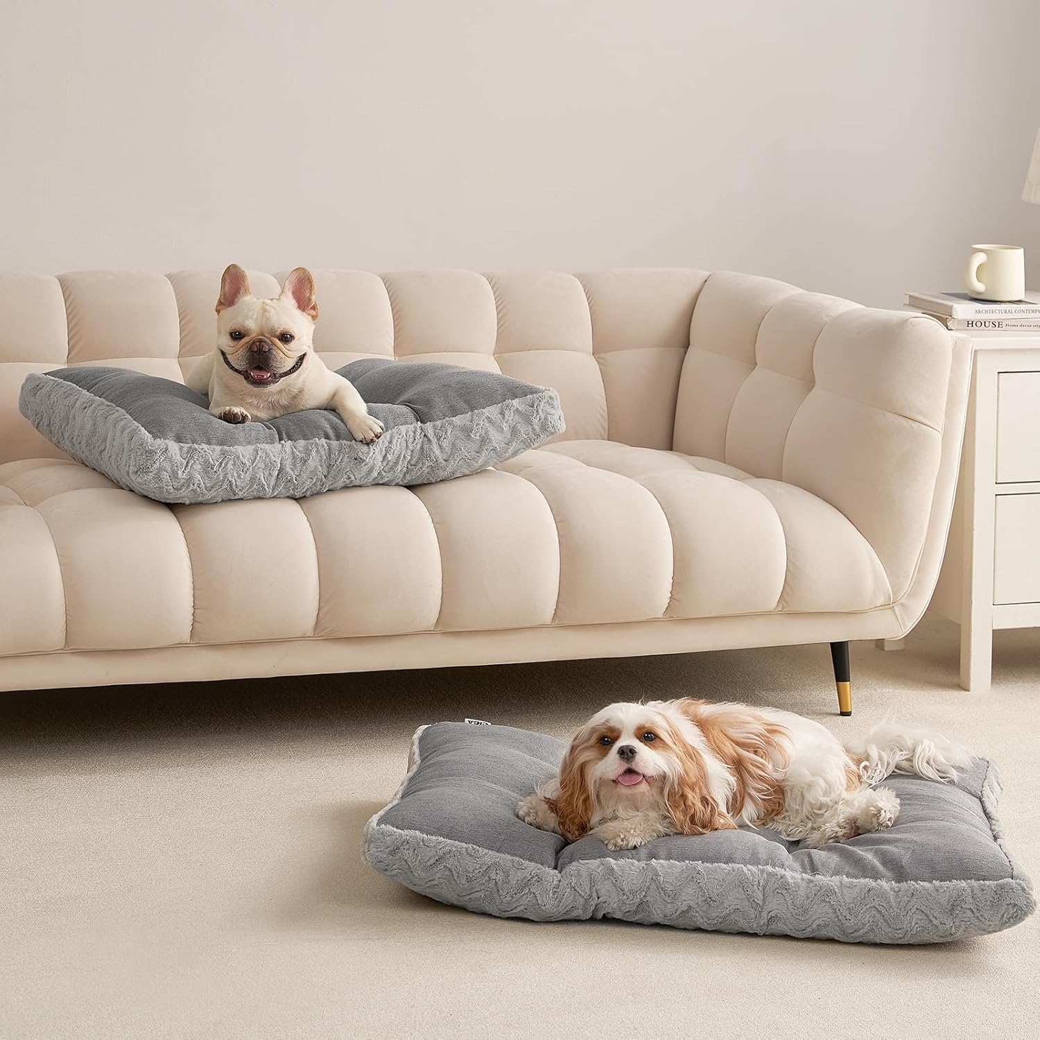 EHEYCIGA Кучешко легло за малки кучета, което може да се пере, 58 x 45 см, Пухкава възглавница за малки кучета, Мека двустранна постелка за кучета с изкуствена кожа и изкуствен лен, сива