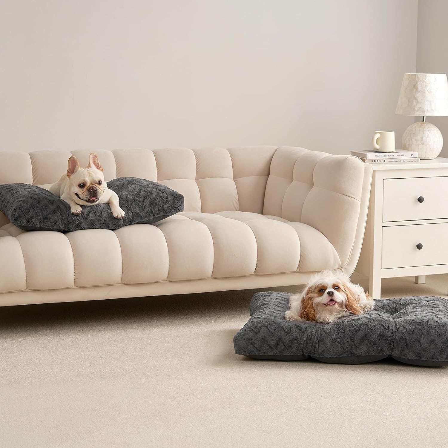 EHEYCIGA Кучешко легло за малки кучета, което може да се пере, 58 x 45 см, Пухкава възглавница за малки кучета, Мека двустранна постелка за кучета с изкуствена кожа и изкуствен лен, Тъмно сиво