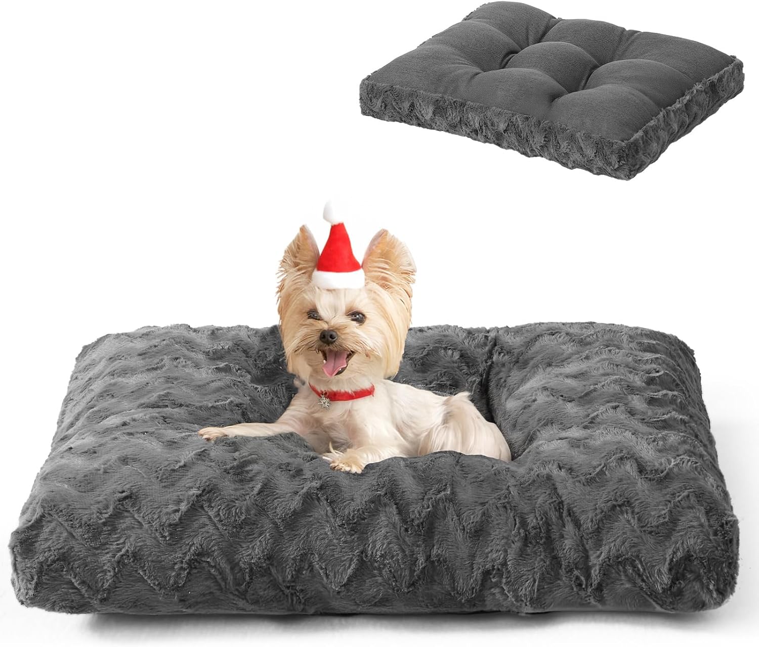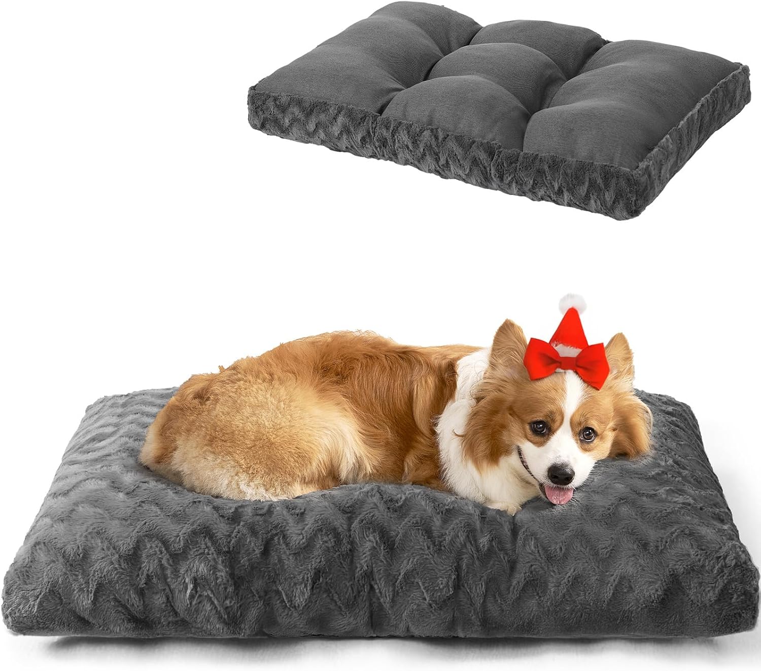 EHEYCIGA Кучешко легло за средни кучета, което може да се пере, 73 x 53 см, Пухкава възглавница за малки и средни кучета, Мека двустранна постелка за кучета с изкуствена кожа и изкуствен лен, Тъмно сиво