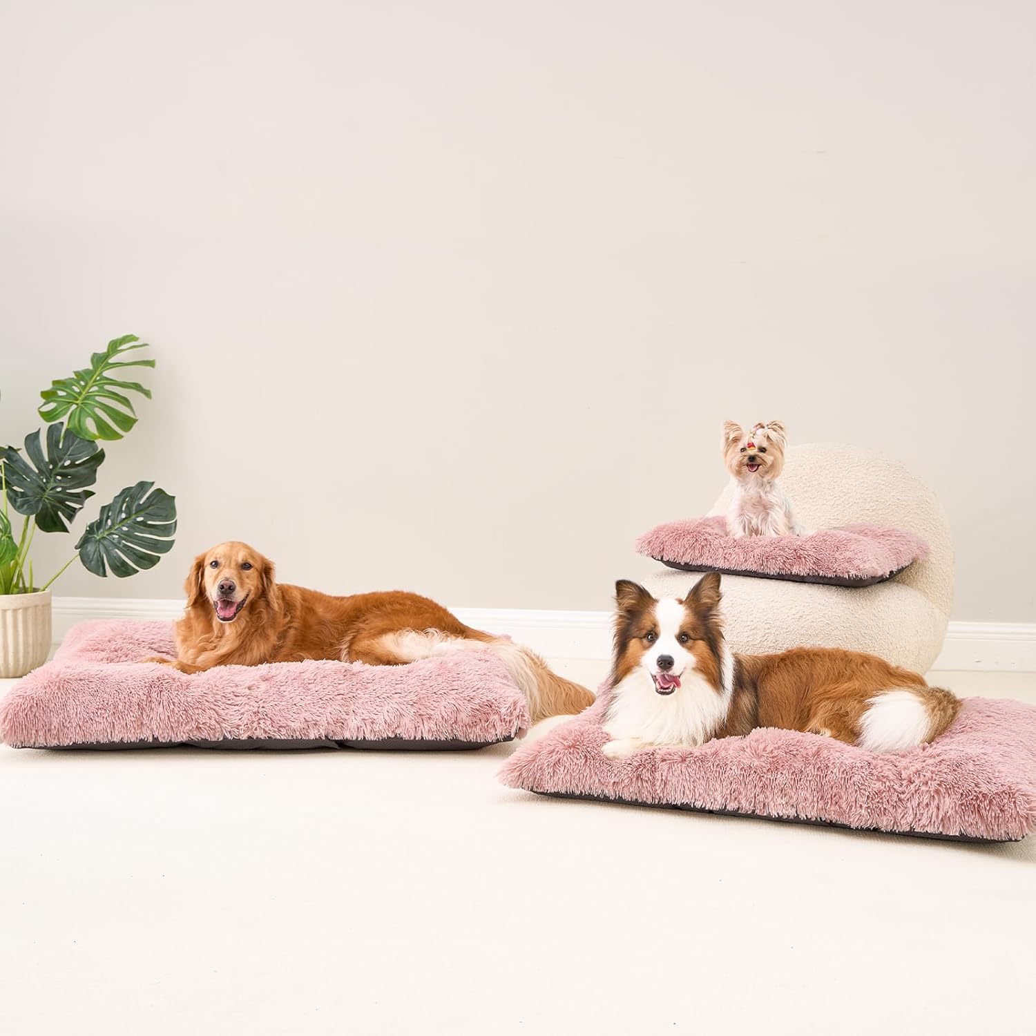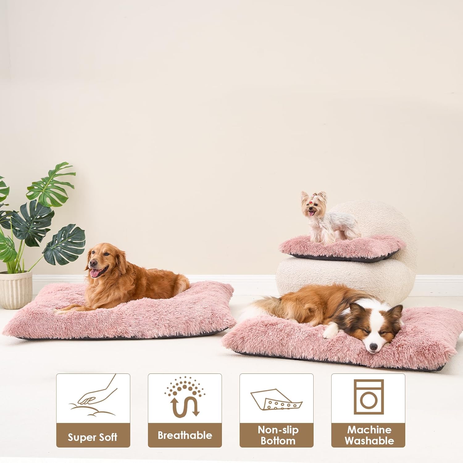 EHEYCIGA Пухкаво кучешко легло за големи кучета XL, Възглавница за кучета, която може да се пере, Гушкава неплъзгаща се постелка за кучета с дълъг плюш, Розово, 112 x 85 см