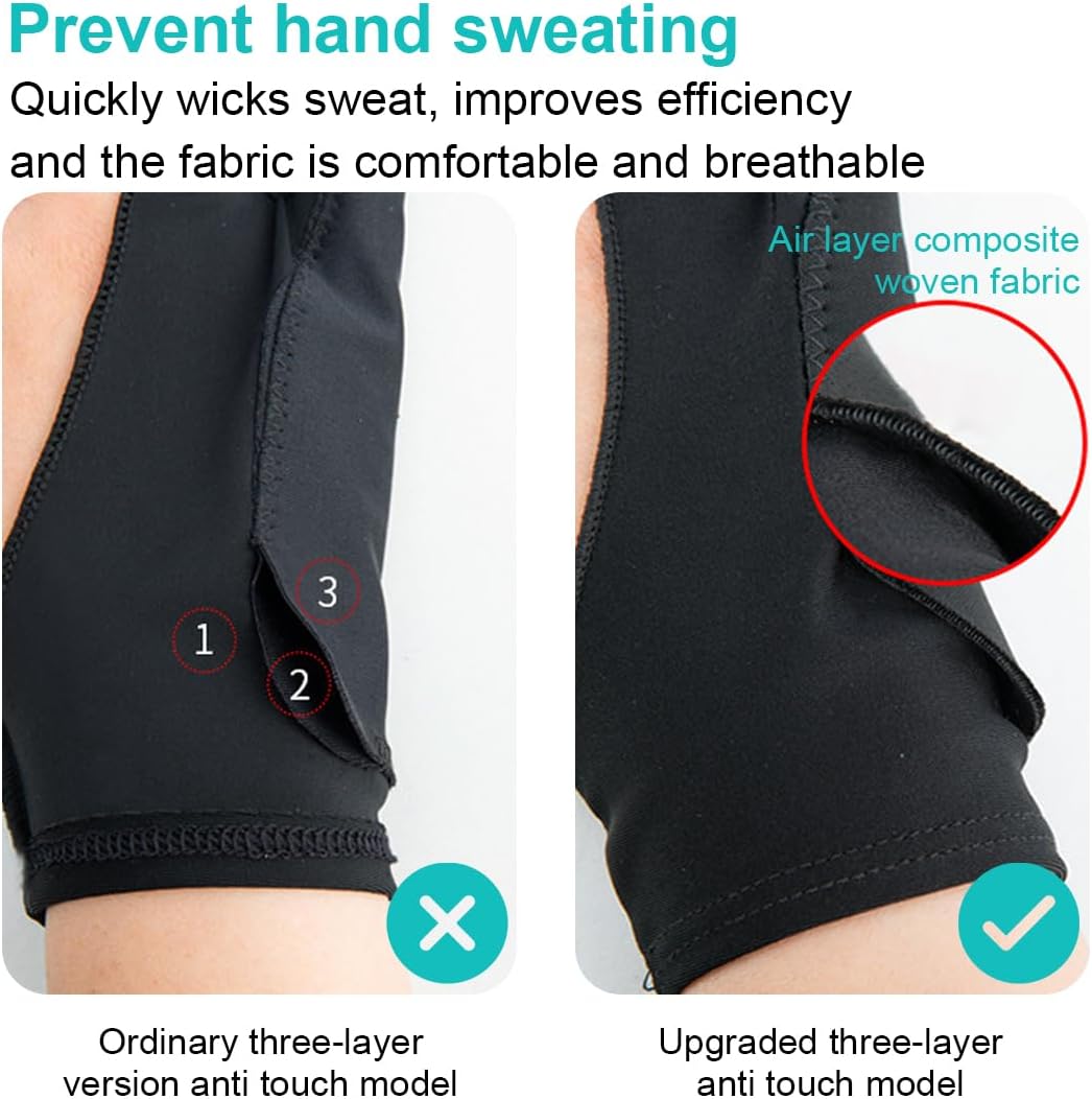 ???? РЪКАВИЦА ПРОТИВ ГРЕШКИ ДОКОСВАНЕ: Ръкавицата за рисуване е достатъчно дебела, с тройно подплатен дизайн, за да предотврати случайно докосване на дланта и пръстови отпечатъци върху сензорния екран, което ви позволява да държите ръката си естествено върху екрана, докато рисувате.