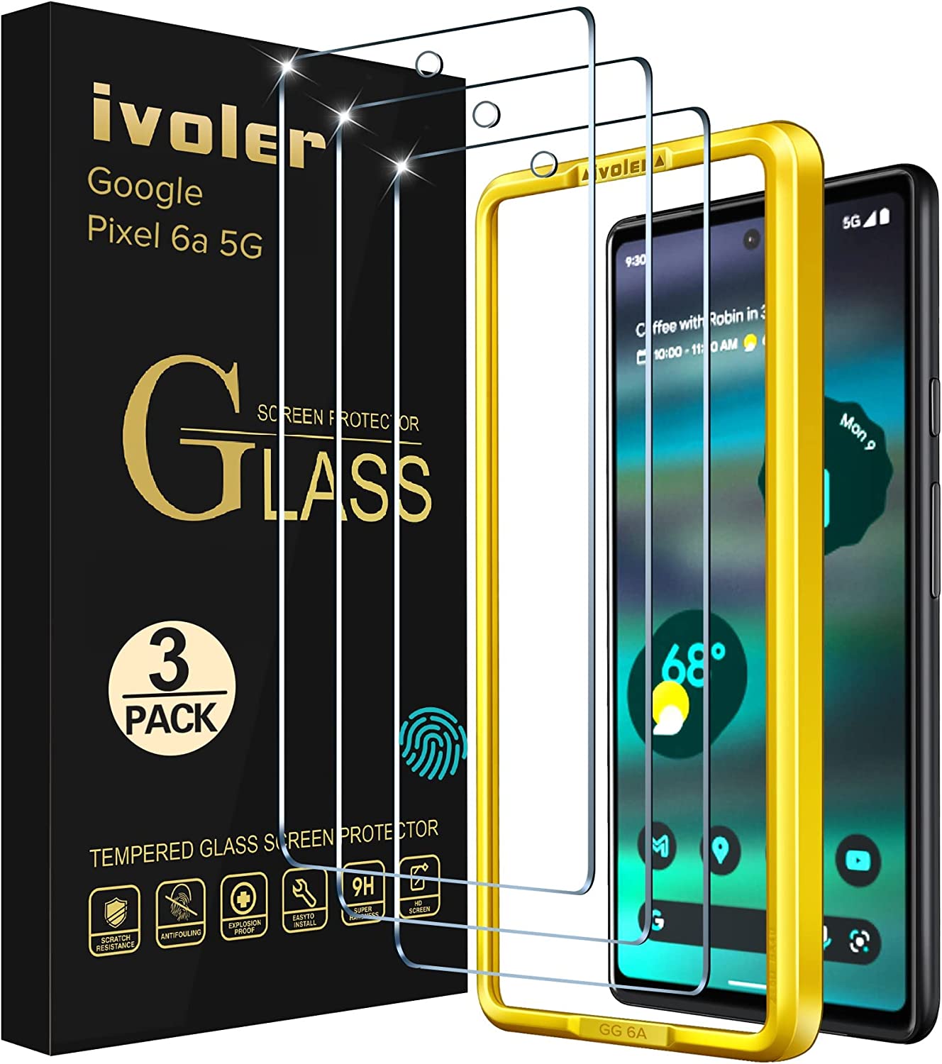 Екранен протектор iVoler, За Google Pixel 6A, 6.1", 9H, Защита от удари и надрасквания, 3 броя