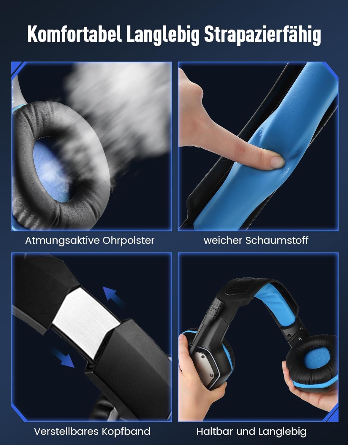 • Леки и удобни: Геймърските слушалки E1000 тежат само 250 г. Ергономичният дизайн и големите наушници, изработени от мека изкуствена кожа, осигуряват комфорт при продължително носене. Регулируемата лента за глава позволява прилягане без ограничения.