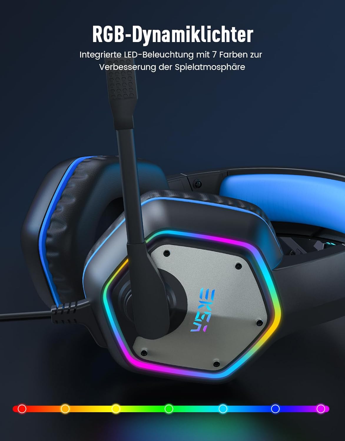 EKSA Слушалки USB с микрофон, PC Слушалки сини, 7.1 съраунд звук за точно възпроизвеждане на звука по време на игра, RGB геймърски слушалки с микрофон с шумопотискане, USB връзка за PS4/PS5 компютър
