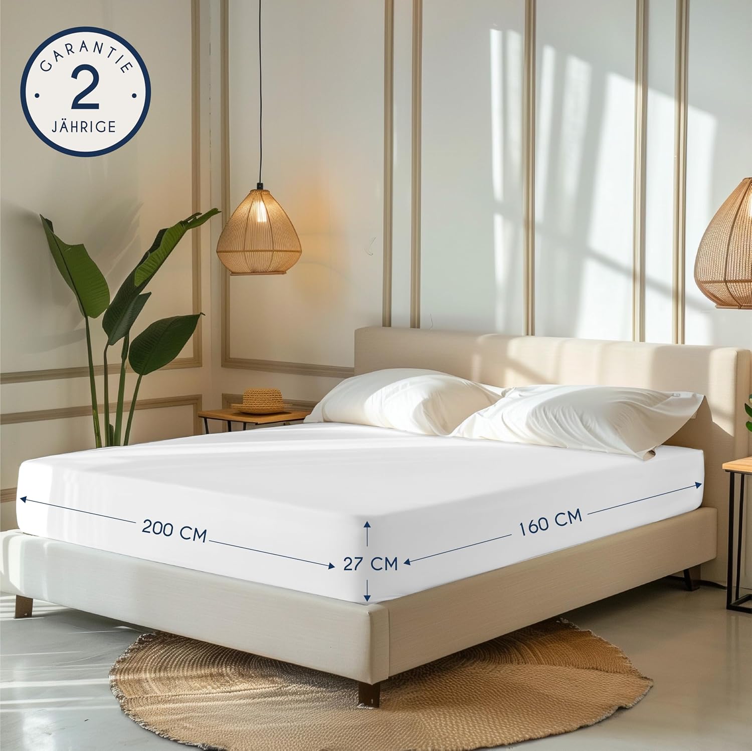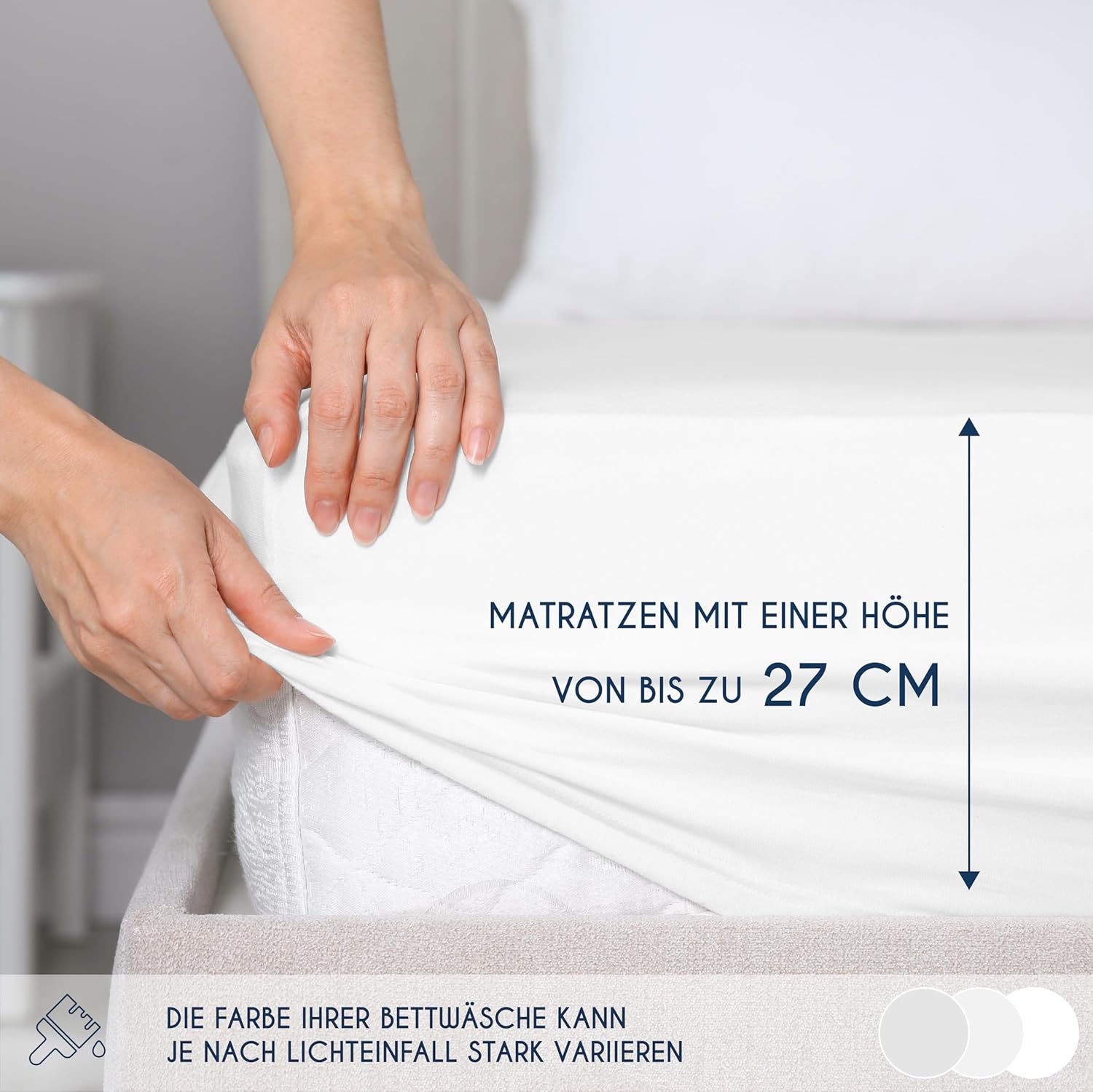 • Подправете матрака си – проектирайте спалното си бельо с този чаршаф от джърси памук за възрастни в бежово (100% джърси памук и 130 г/м²), лек, дишащ и много издръжлив материал: ще ви хареса да се пъхнете под одеялото. 200 x 200 см се отнася за размера на матрака, размерите на чаршафа може да варират с няколко сантиметра, за да паснат по-добре на възглавницата.