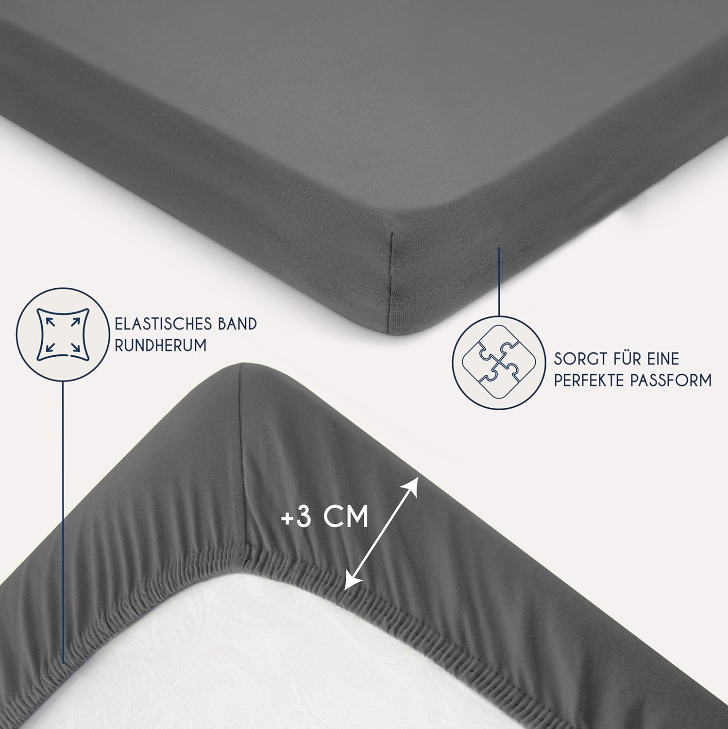 • Подправете матрака си – проектирайте спалното си бельо с този чаршаф от джърси памук за възрастни в бежово (100% джърси памук и 130 г/м²), лек, дишащ и много издръжлив материал: ще ви хареса да се пъхнете под одеялото. 200 x 200 см се отнася за размера на матрака, размерите на чаршафа може да варират с няколко сантиметра, за да паснат по-добре на възглавницата.