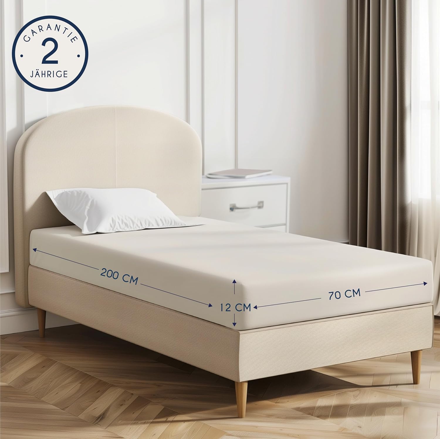• Подправете матрака си – проектирайте спалното си бельо с този чаршаф от джърси памук за възрастни в бежово (100% джърси памук и 130 г/м²), лек, дишащ и много издръжлив материал: ще ви хареса да се пъхнете под одеялото. 200 x 200 см се отнася за размера на матрака, размерите на чаршафа може да варират с няколко сантиметра, за да паснат по-добре на възглавницата.