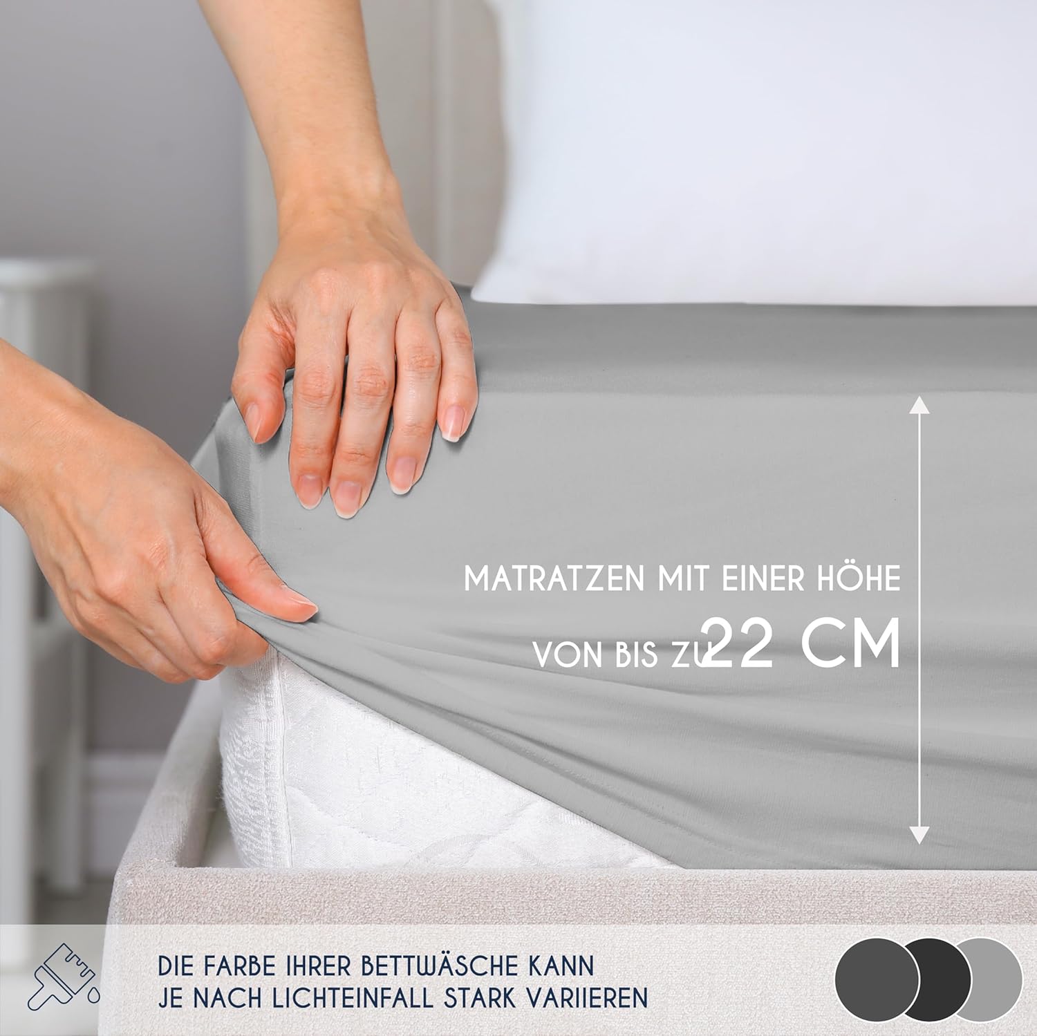 • Лесно регулиране – високите пръти на този чаршаф с размери 200 x 200 см, заедно с еластичната лента по целия периметър, гарантират, че повечето матраци могат да се поставят за нула време, без да се образуват гънки.