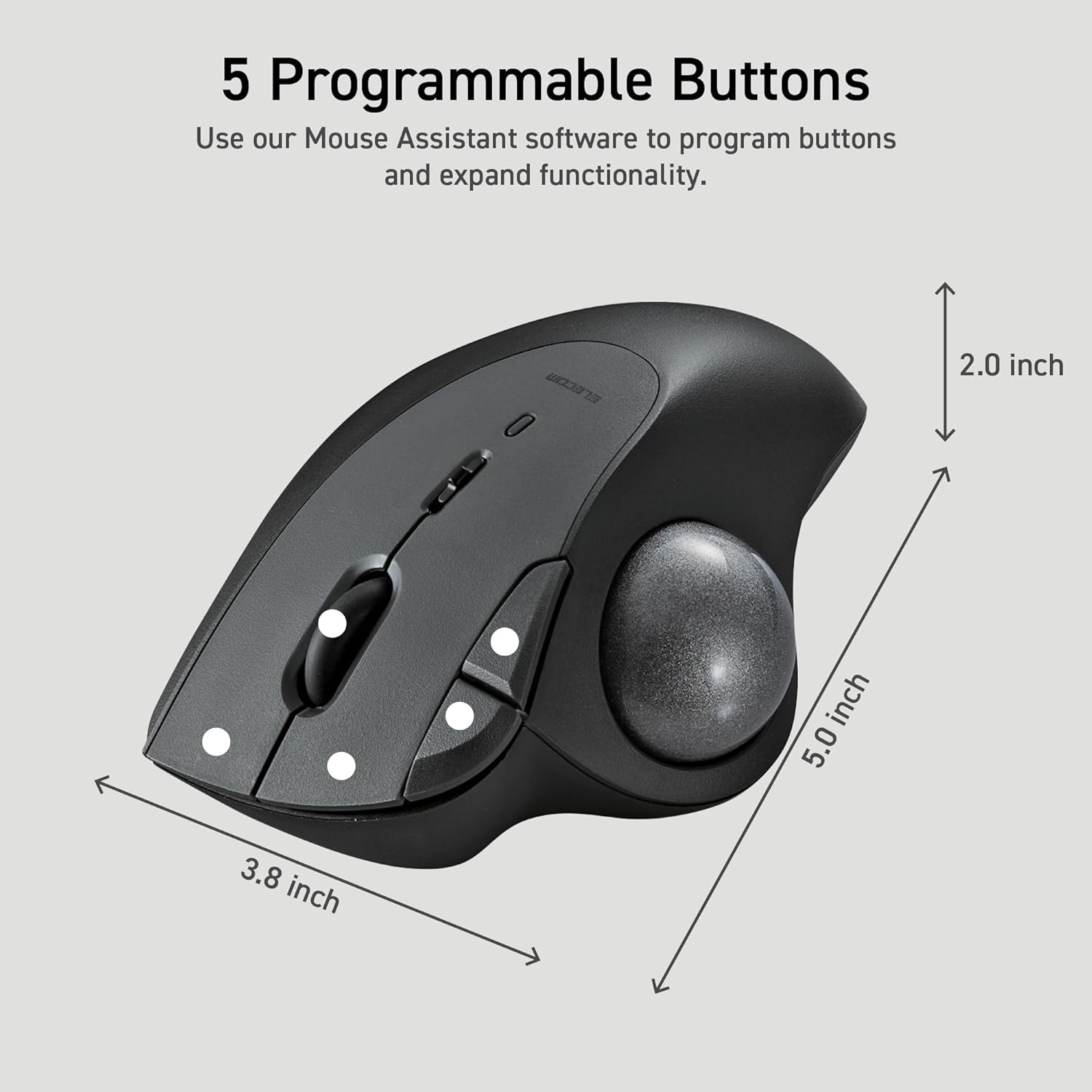 Elecom IST тракбол мишка безжична Bluetooth ергономичен дизайн ролкови лагери компютър/лаптоп Windows 11/MacOS, iPadOS/Android, черна M-IT11BRBK
