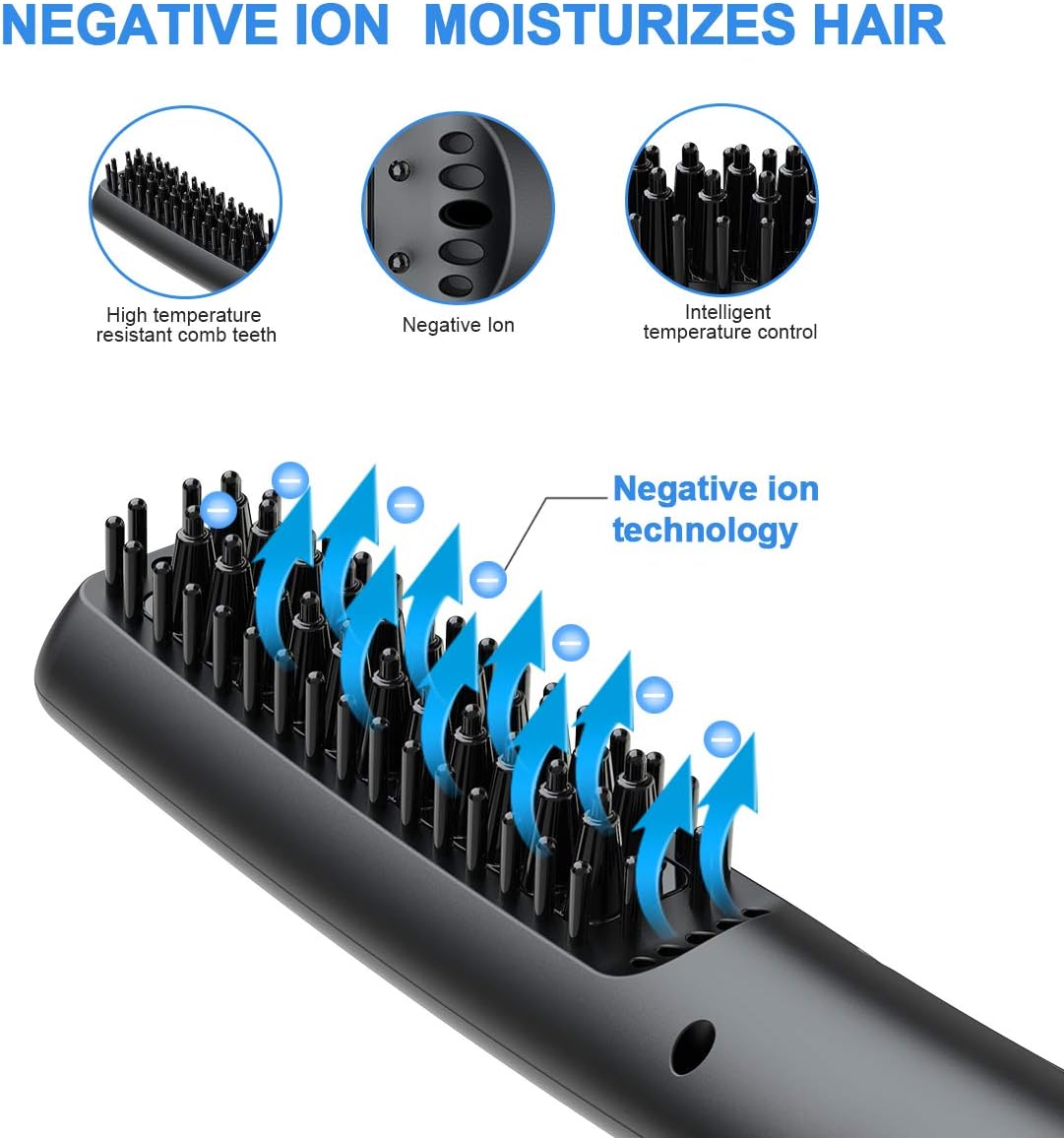 • Гладка и блестяща брада: четката за изглаждане на брада е оборудвана с усъвършенстван PTC нагревателен елемент, който генерира топлина бързо и стабилно в рамките на 30 секунди, за да изглади брадата и косата и да им придаде естествен, елегантен и блестящ вид. Кажете сбогом на разхвърляната си брада, увеличете добрия си външен вид и увереност