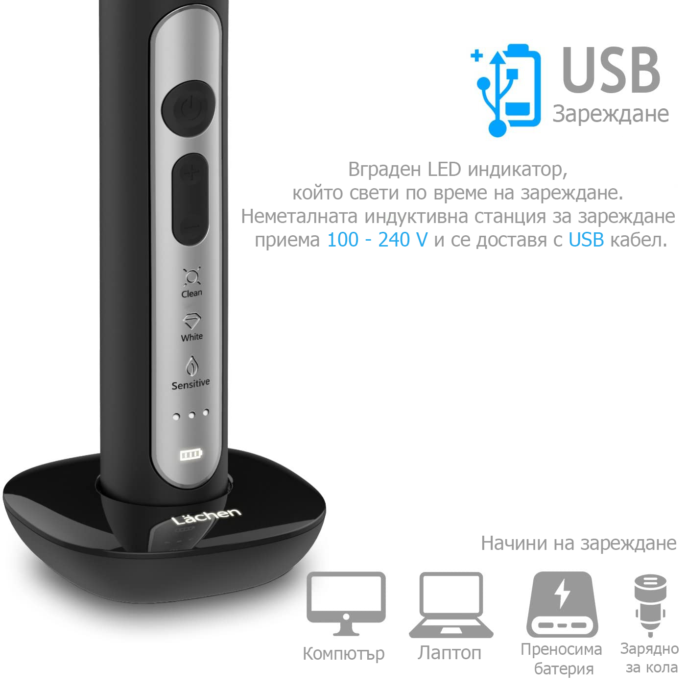 • Зареждане чрез USB / Време за зареждане: 3 ~ 5 часа.