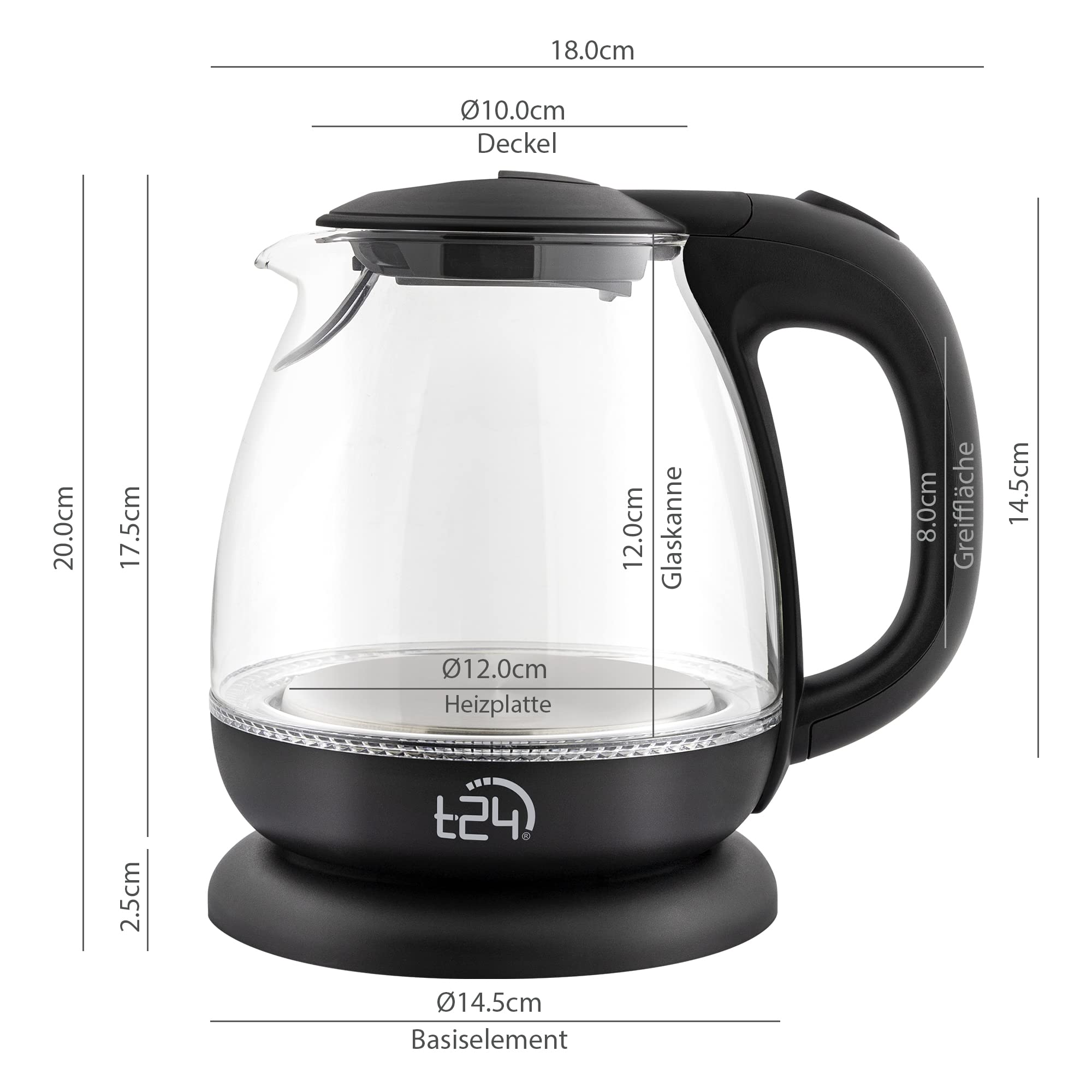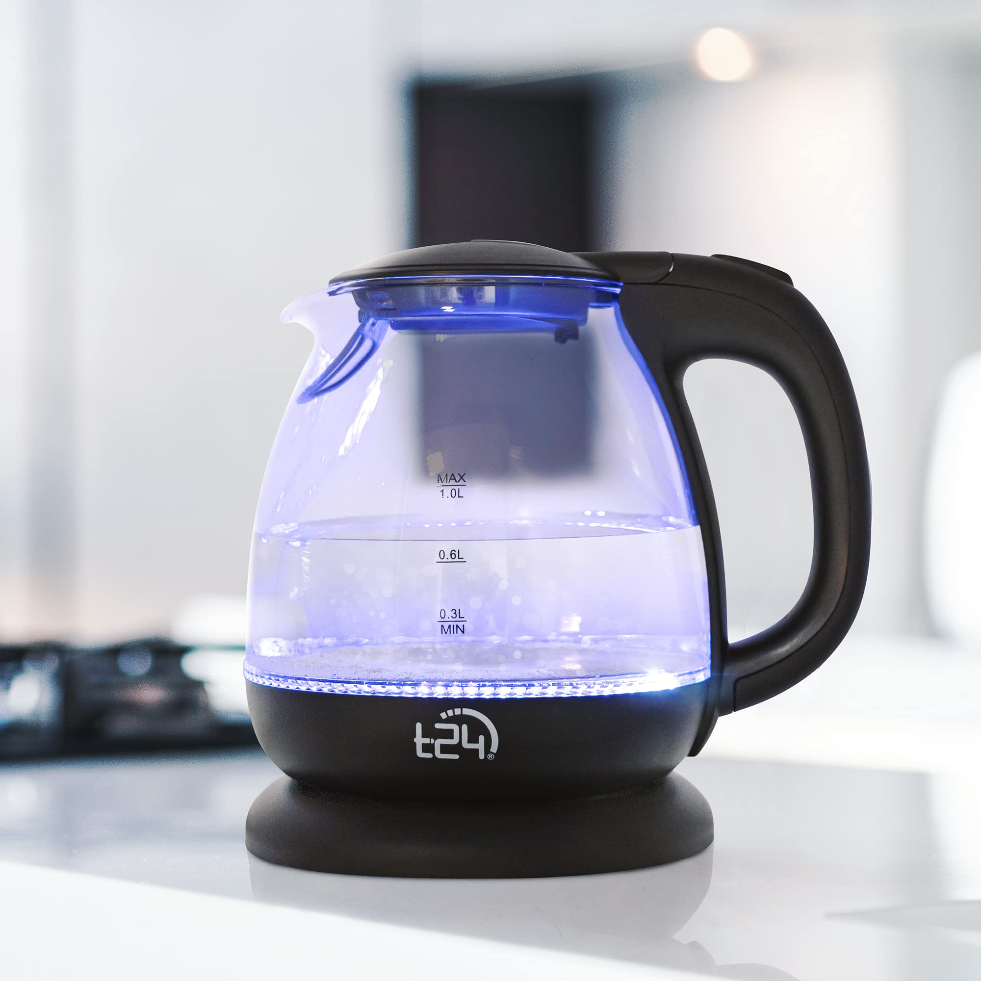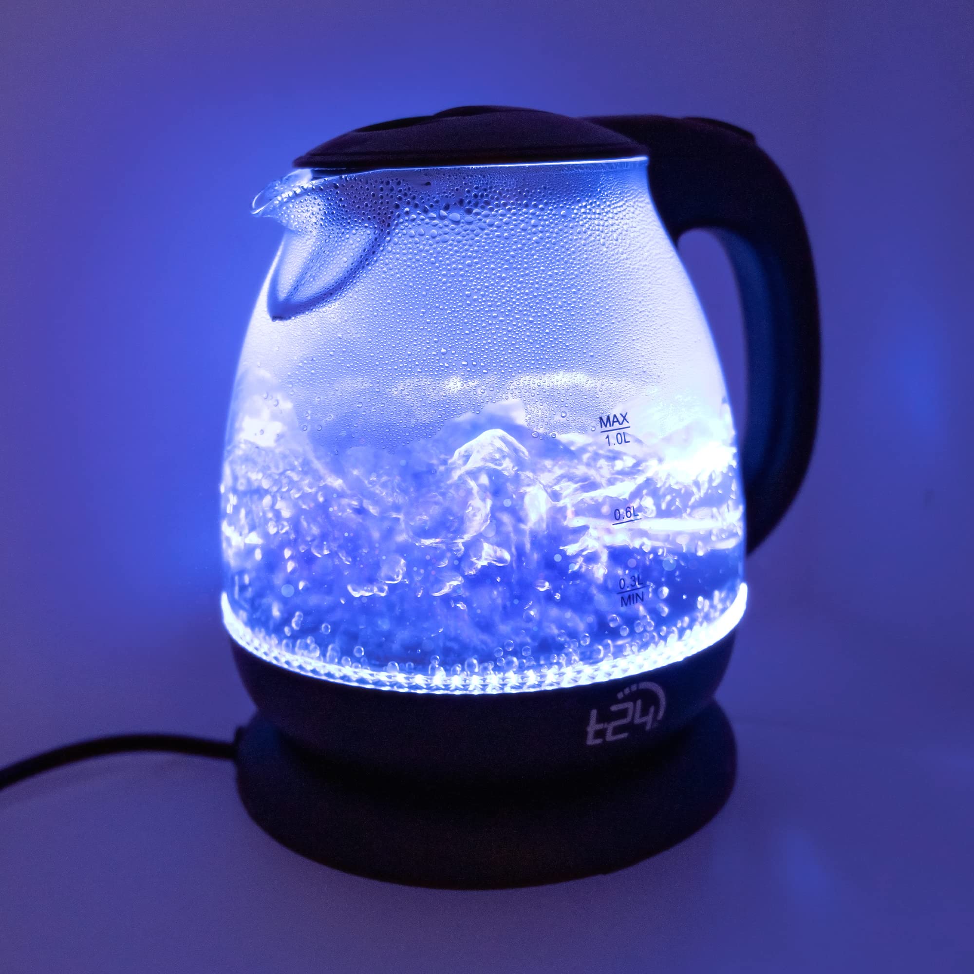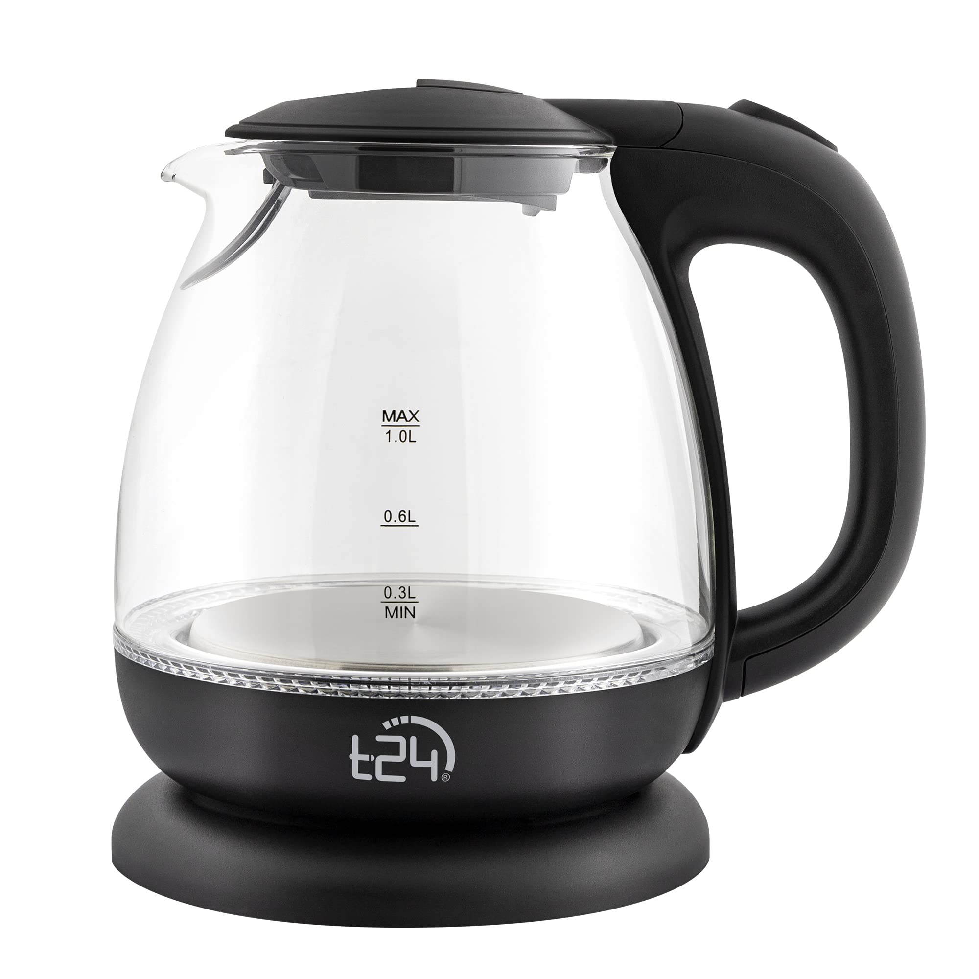 Електрическа кана T24, 1100 W, 1 литър, LED вътрешно осветление, Черна