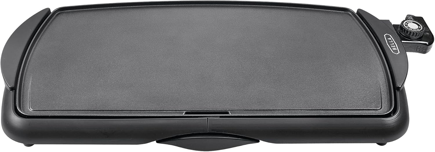 • XL електрическа плоча за скара: здрава, изключително голяма повърхност за скара с нагревателна система от 1500 вата, дръжки, хладни на допир, и основа с лента за лесно обръщане на палачинките. Подвижен регулатор с прецизен контрол на температурата.
