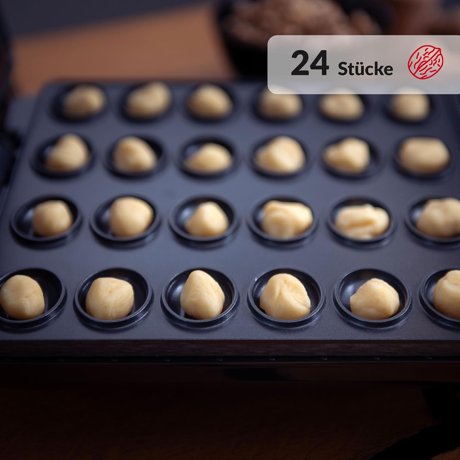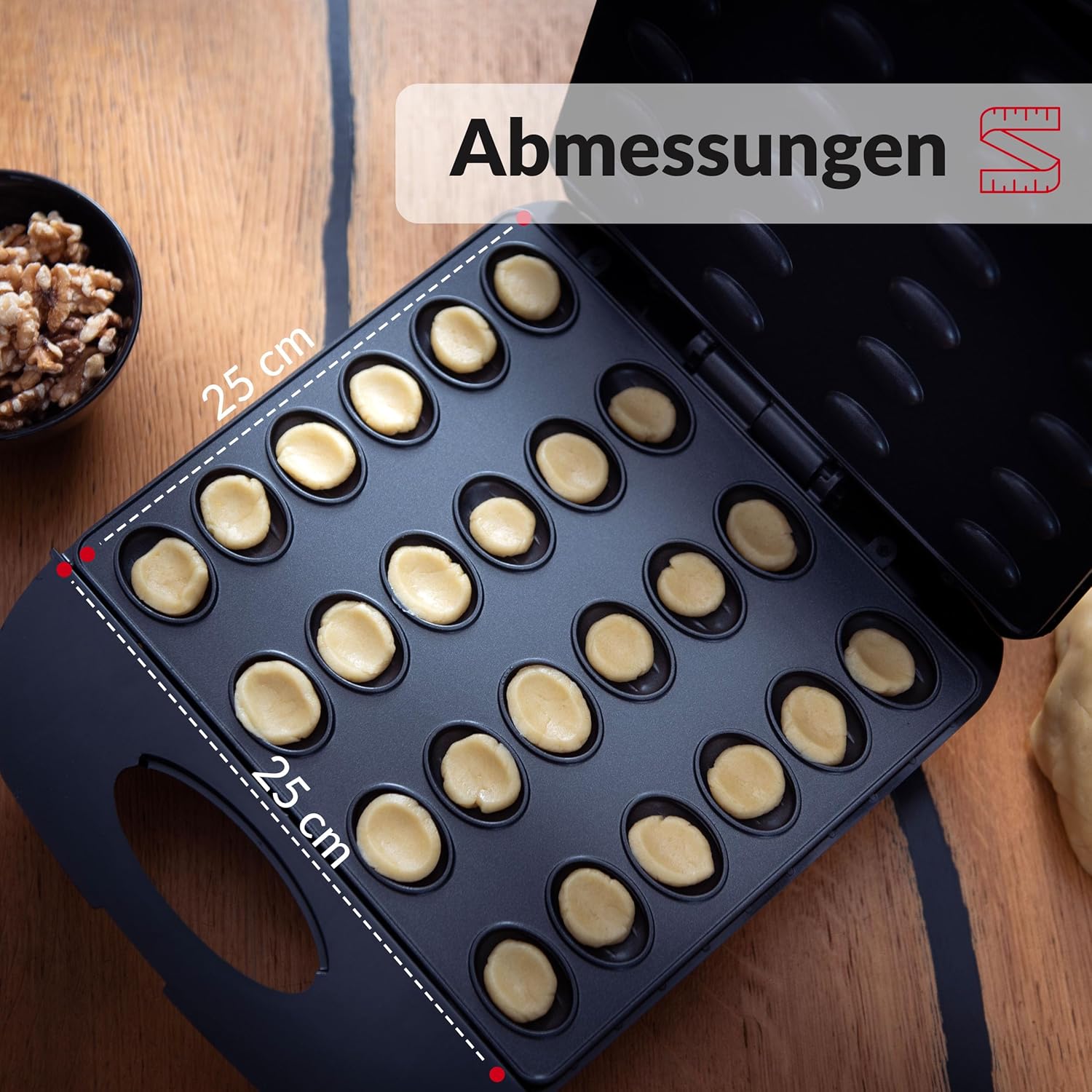 Електрическа машина за ядки Lehmann с незалепващо покритие | 1700 вата | Машина за ядки за 24 половинки ядки | Машина за печене на ядки | Гофретник за орешки и вафли с ядки