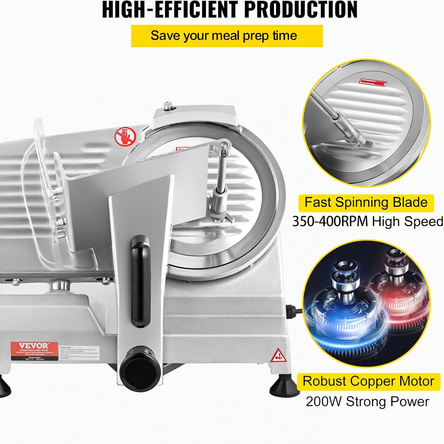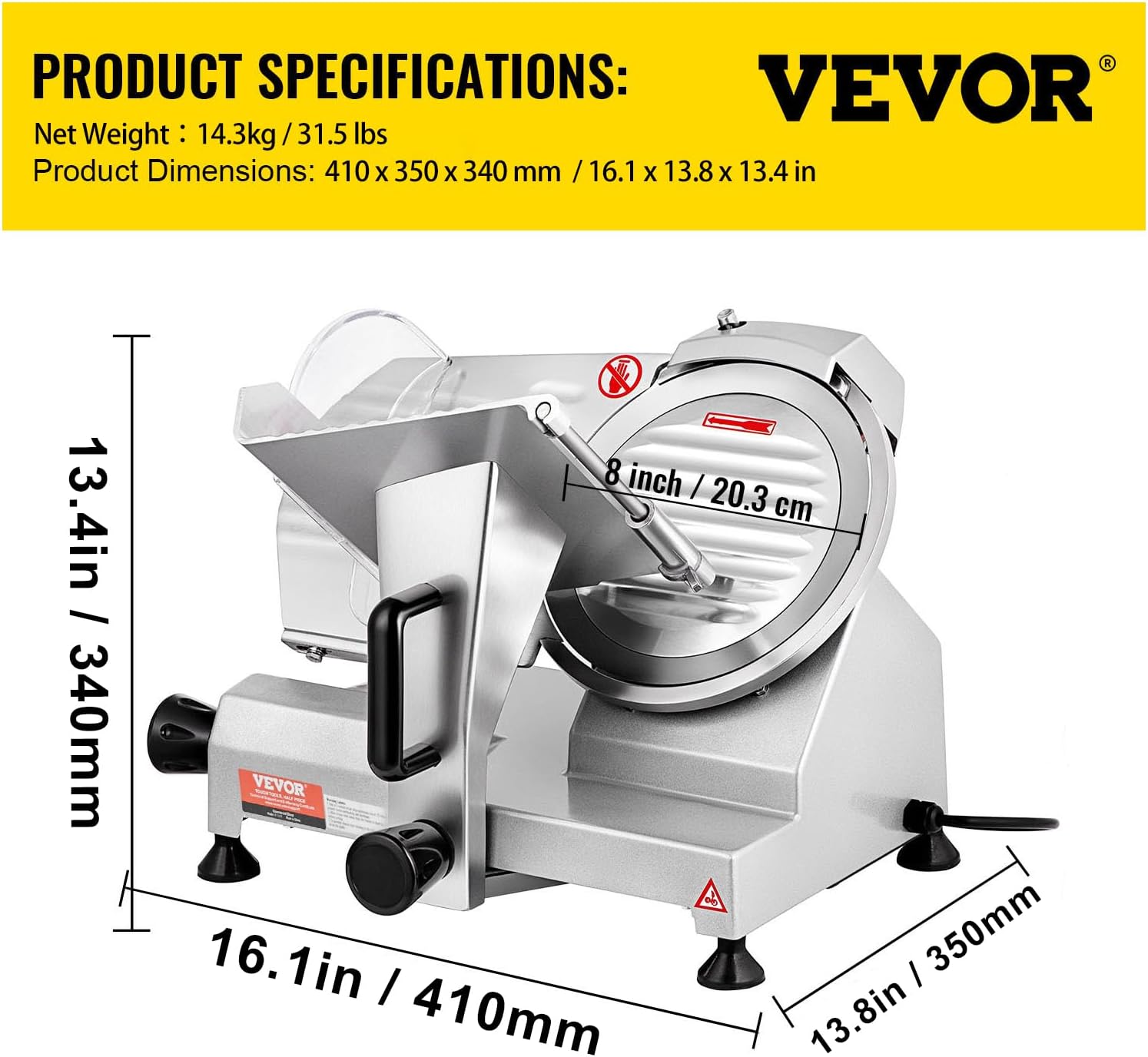 Електрическа машина за месо VEVOR, търговска, 200W, с острие от въглеродна стомана 8", регулируема дебелина 0-12 мм за месо, сирене и др.