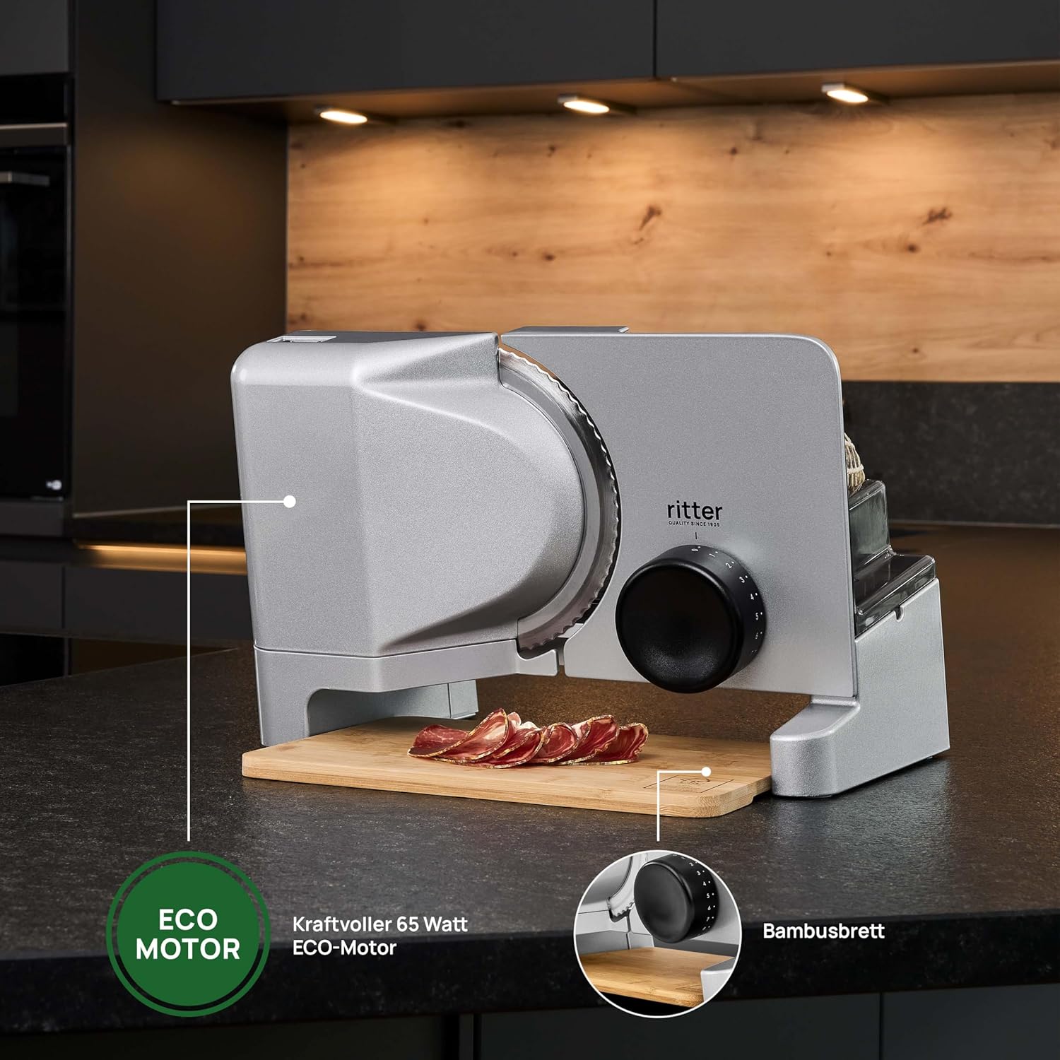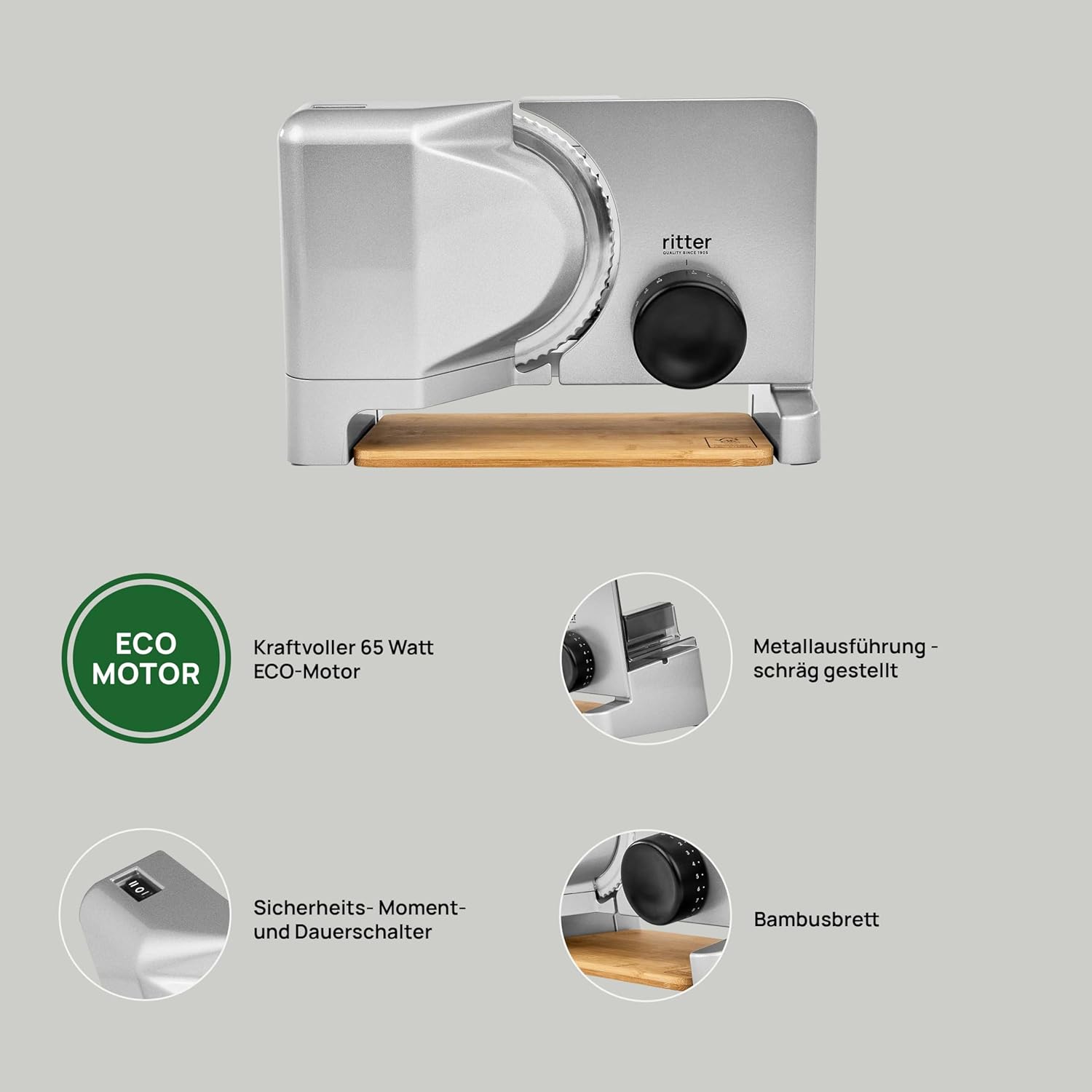 Електрическа метална резачка и машина за хляб Ritter Classico 5 с еко мотор, произведена в Германия, цвят металик сребрист