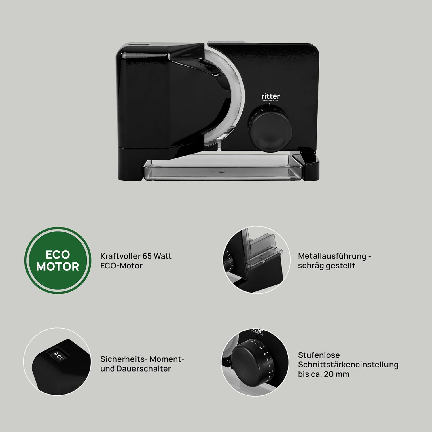 Електрическа метална резачка и машина за хляб Ritter E 16 с еко мотор, произведена в Германия, черна
