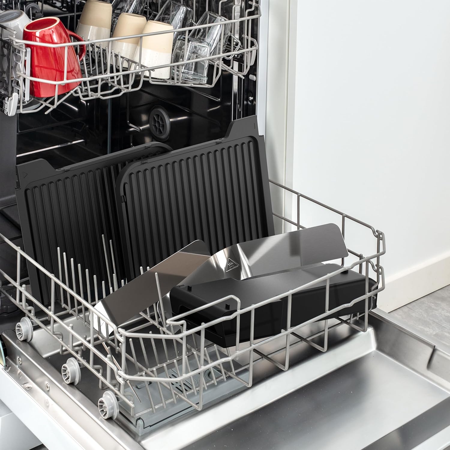 Контейнери за сок, подходящи за миене в съдомиялна машина, предпазител от пръски и подвижни незалепващи плочи за лесно почистване.