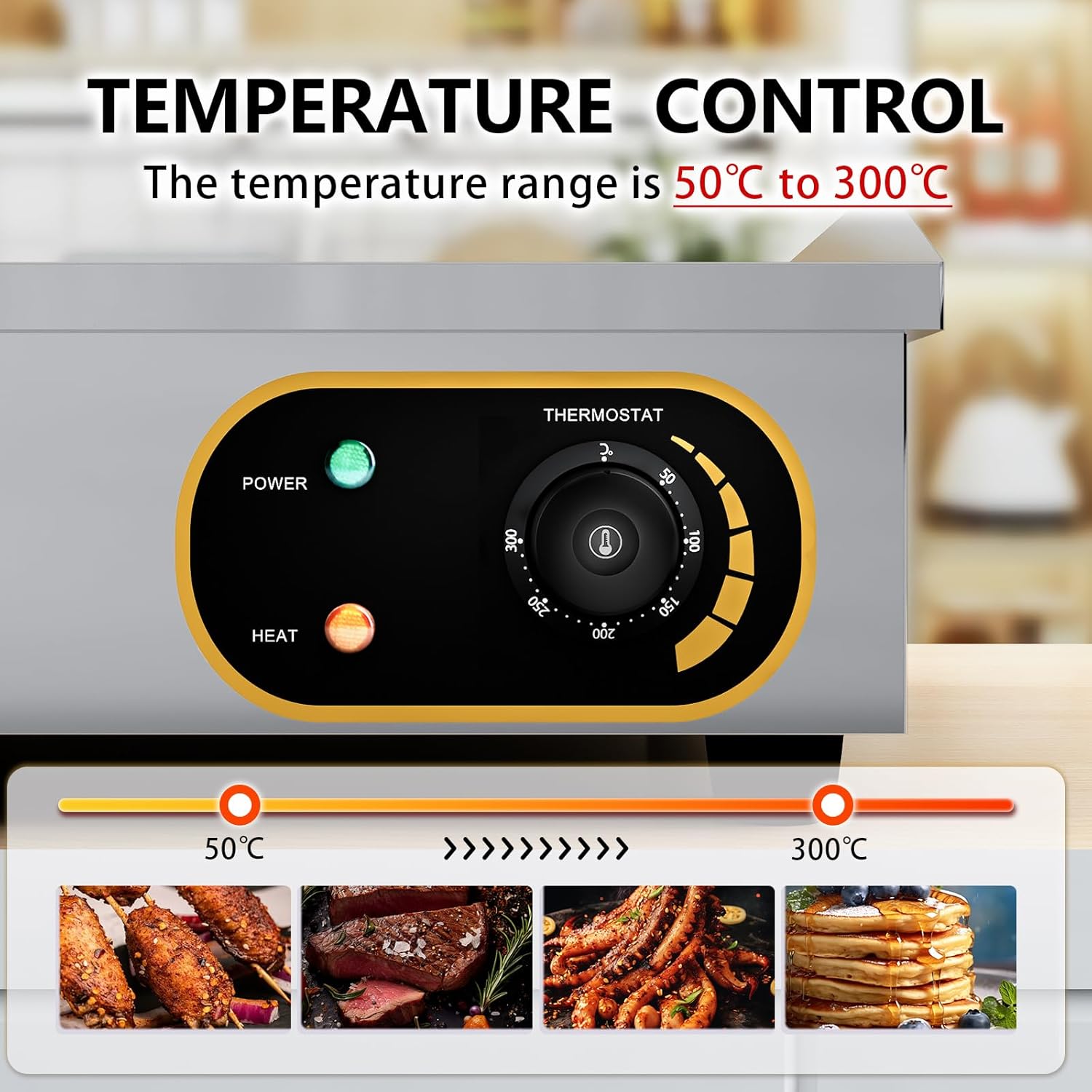 Материал: Корпус от неръждаема стомана + желязна плоча за готвене, Диапазон на контрол на температурата: 50-300 ℃