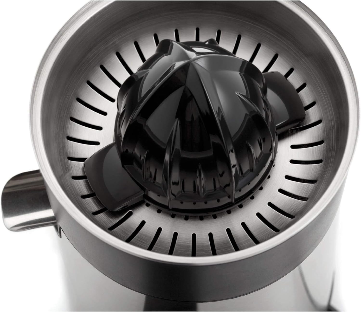 • Благодарение на автоматичната старт-стоп система, моторът на цитрус пресата стартира автоматично и позволява оптимален добив на сок. Интегрираната ситова вложка задържа пулпата и семената, за чист натурален сок.