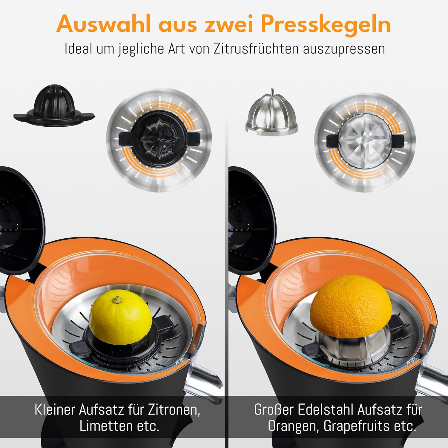 • Здравословна и безопасна: Електрическа сокоизстисквачка за портокали без BPA, перфектна преса за малки и големи цитрусови плодове за секунди. Вкусен коктейл, лимонов сок и портокалов сок - машина, изработена от висококачествена пластмаса и неръждаема стомана.
