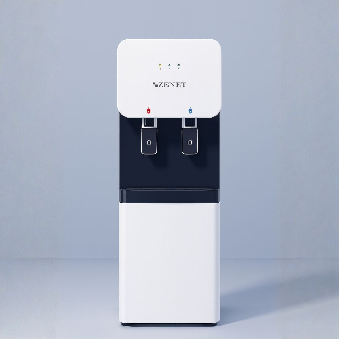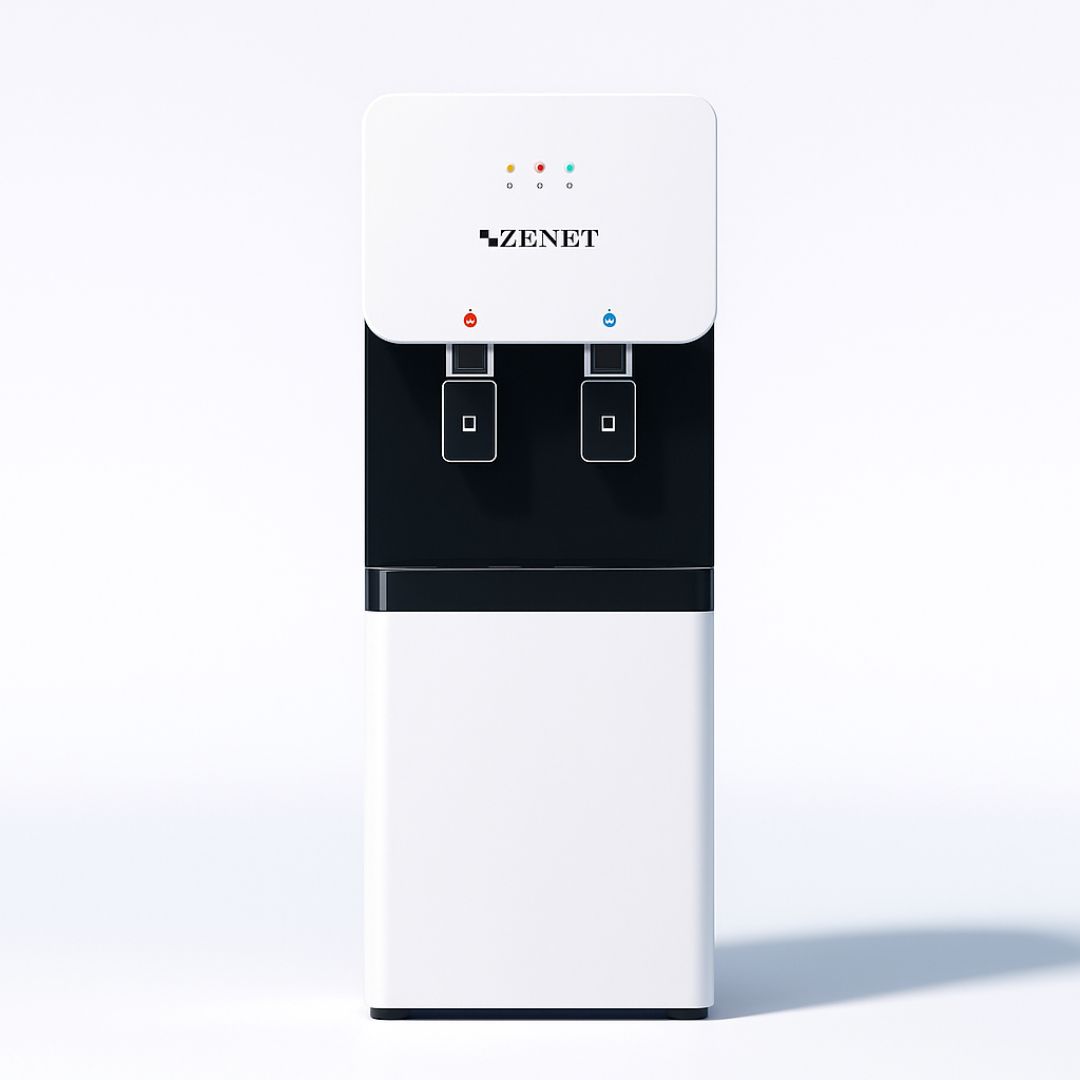 Диспенсърът за вода ZENET ZET-313 съчетава модерен дизайн, надеждна компресорна технология и практичен хладилник за съхранение на напитки или храна. Той осигурява топла, студена и стайна вода само с едно докосване – идеално решение за офиси, домове, училища, рецепции или чакални.
