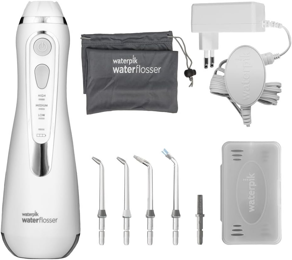 Електрически флосер Waterpink, Безжичен, С 4 накрайника, 3 настройки на налягането, Бял