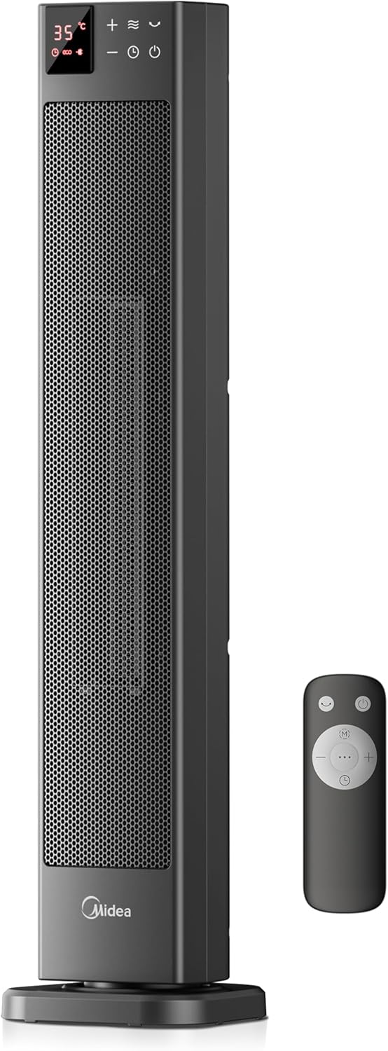 Електрически настолен нагревател Midea, 2000 W PTC керамичен вентилаторен нагревател с 4 режима, преносим отоплител за стая, тих и мощен, защита от прегряване и накланяне, регулируем 5-35°C, 24-часов таймер, ECO