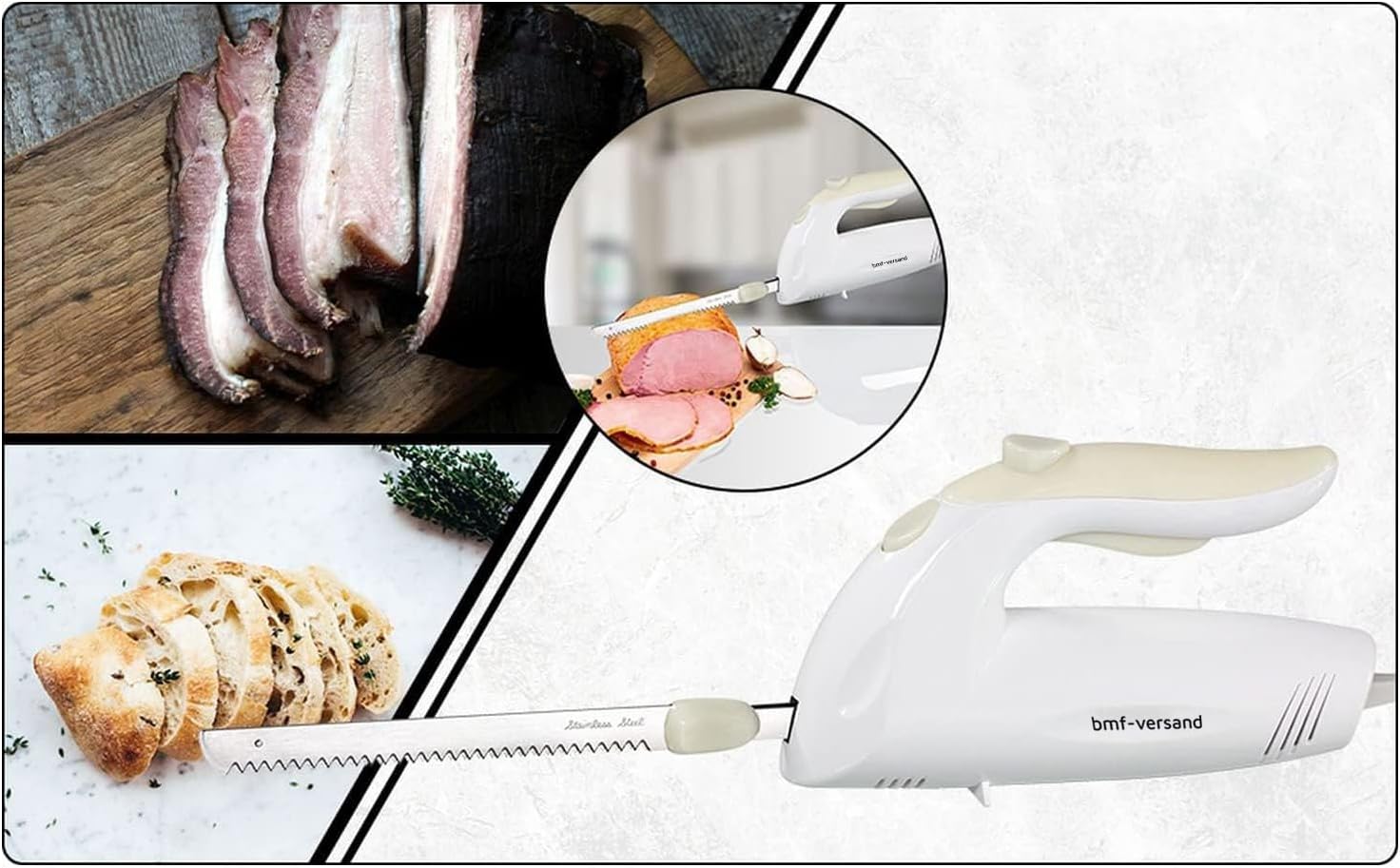 • Универсалният – открийте многофункционалността на нашия електрически нож. Ножът за рязане е подходящ не само за месо, но и за рязане на хляб, кексове, дюнер/кебап и гирос.