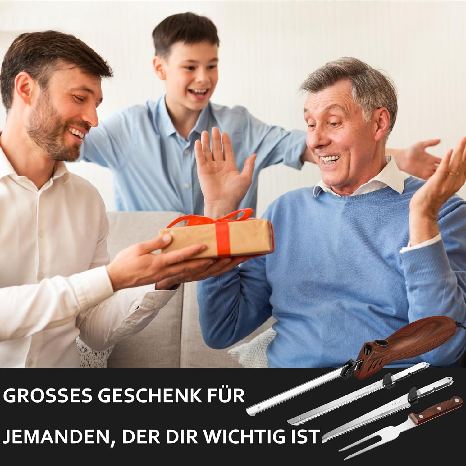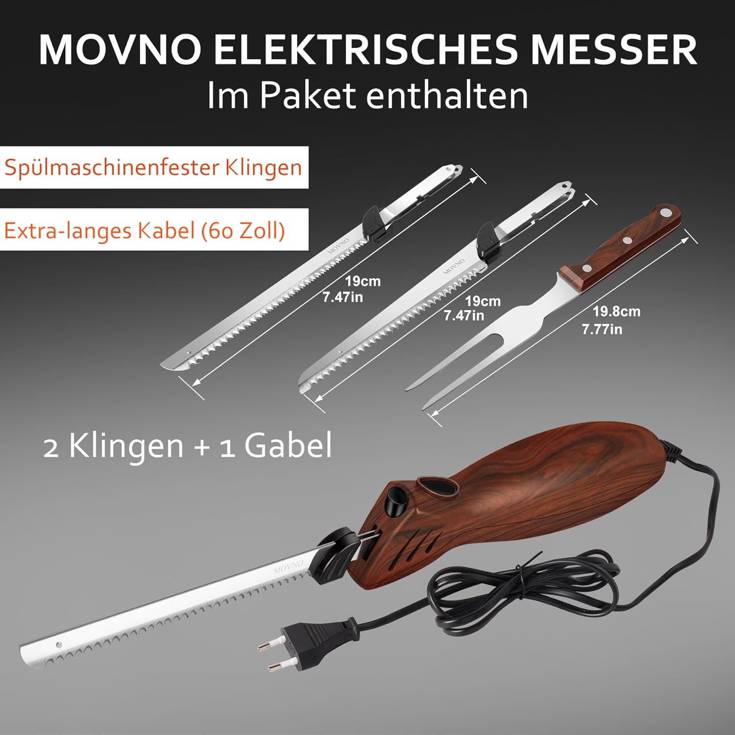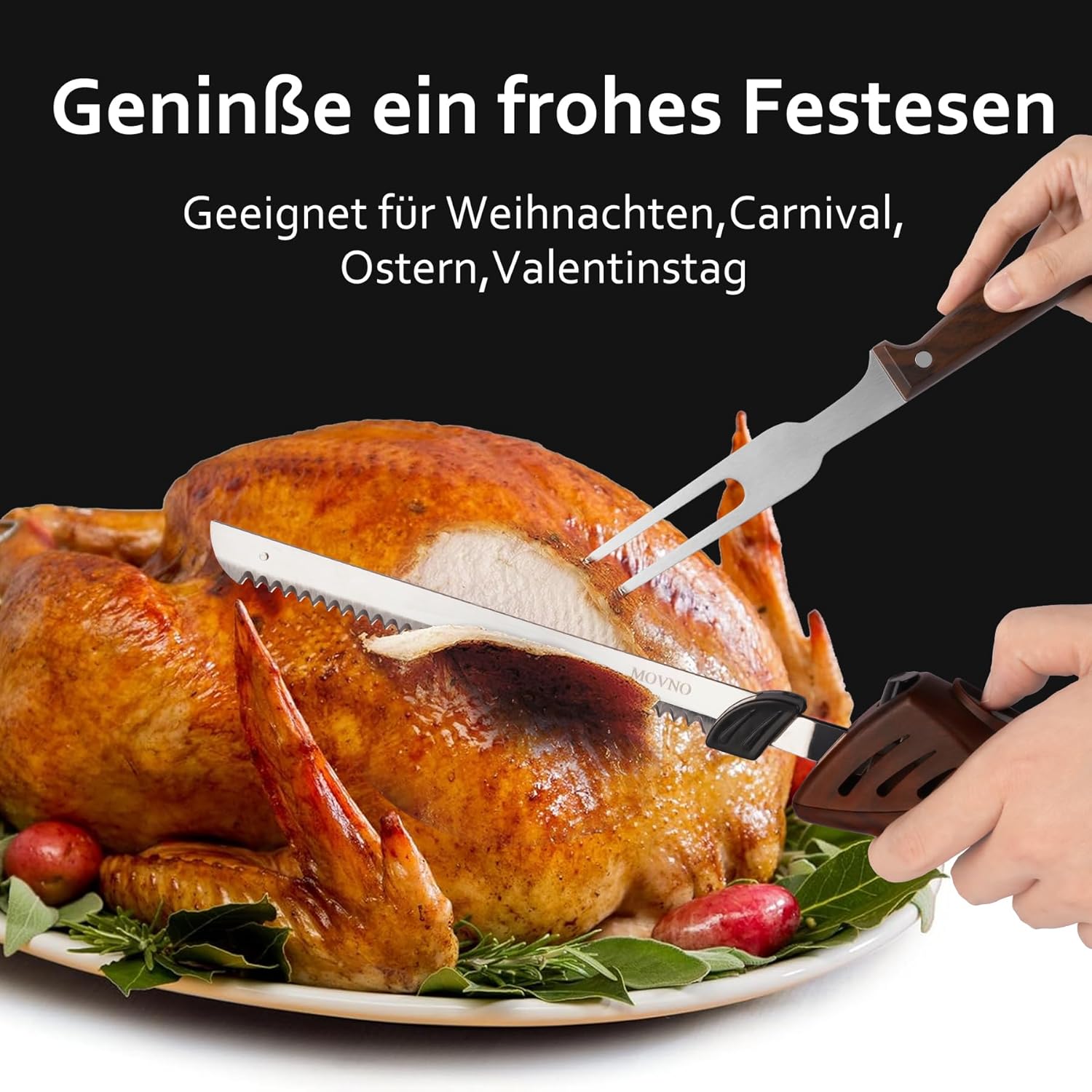 Електрически нож MOVNO, електрически нож за месо, рязане на пуйка, хляб, птици, филетиране, обработка на пяна и други, ергономична дръжка, включена вилица, електрически нож