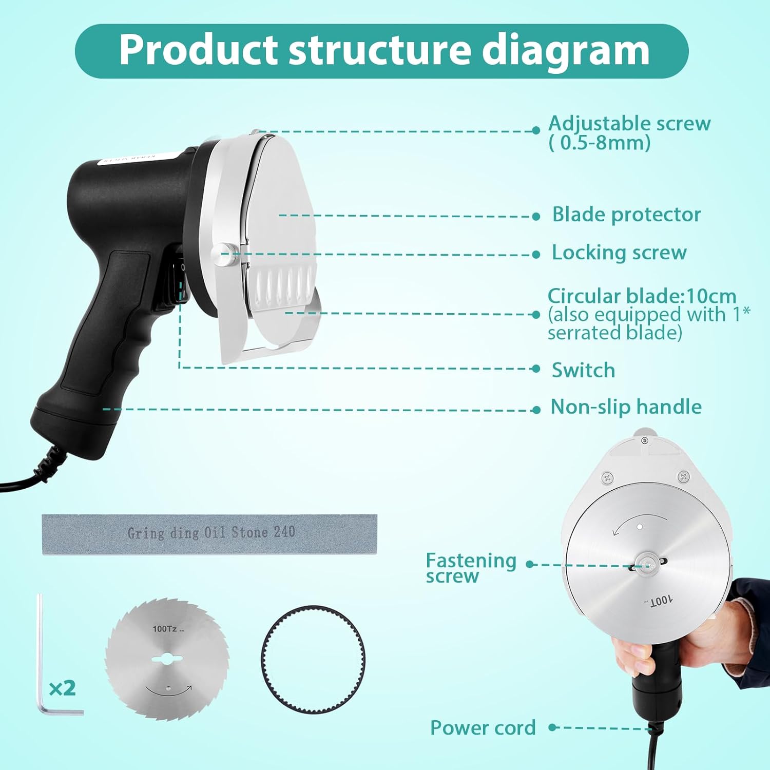 Електрически нож за кебап YJINGRUI / нож за рязане, 2 остриета от неръждаема стомана, 80 вата с регулиране на дебелината на рязане 0,5-8 мм за кебап магазини и ресторанти