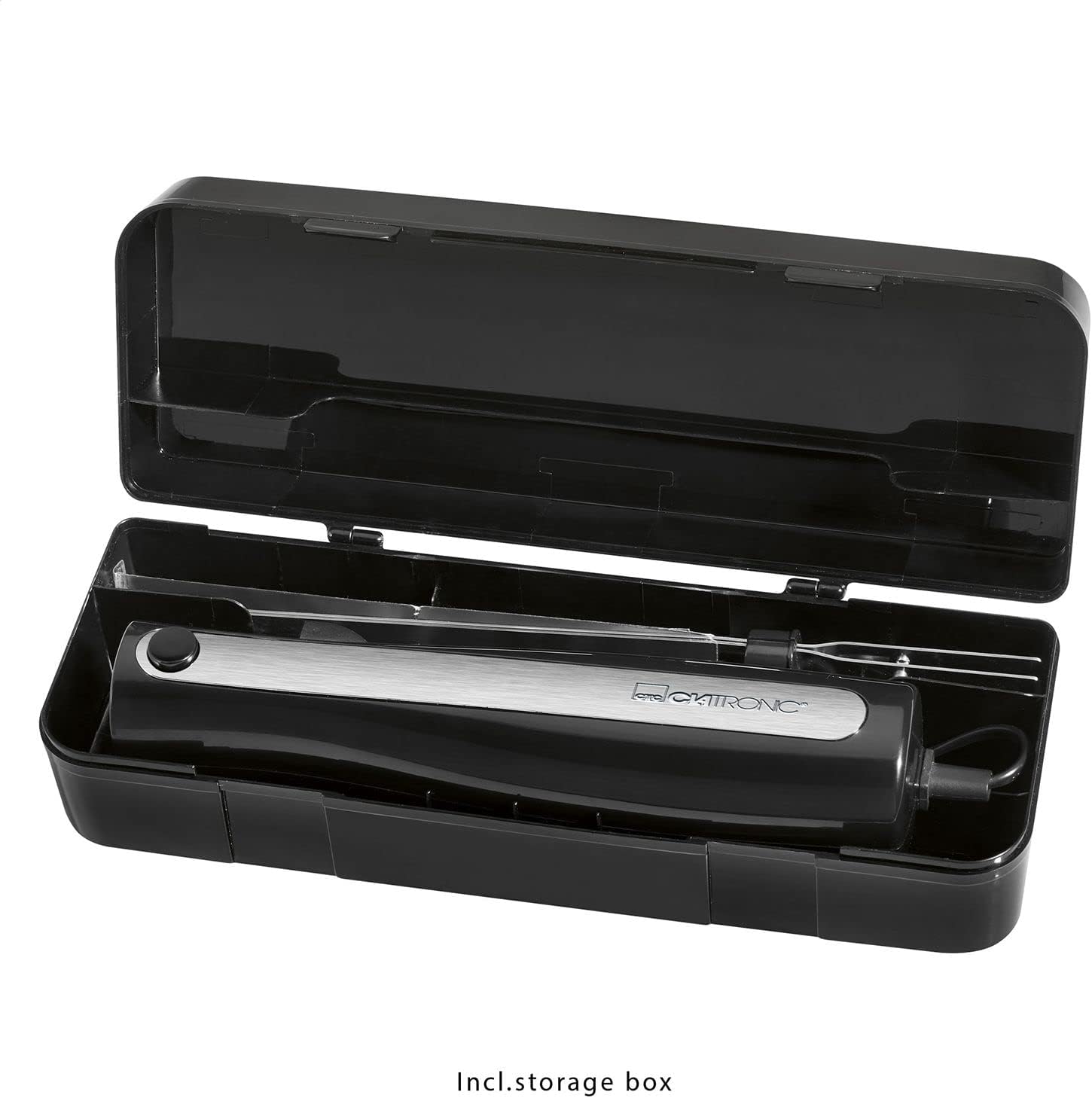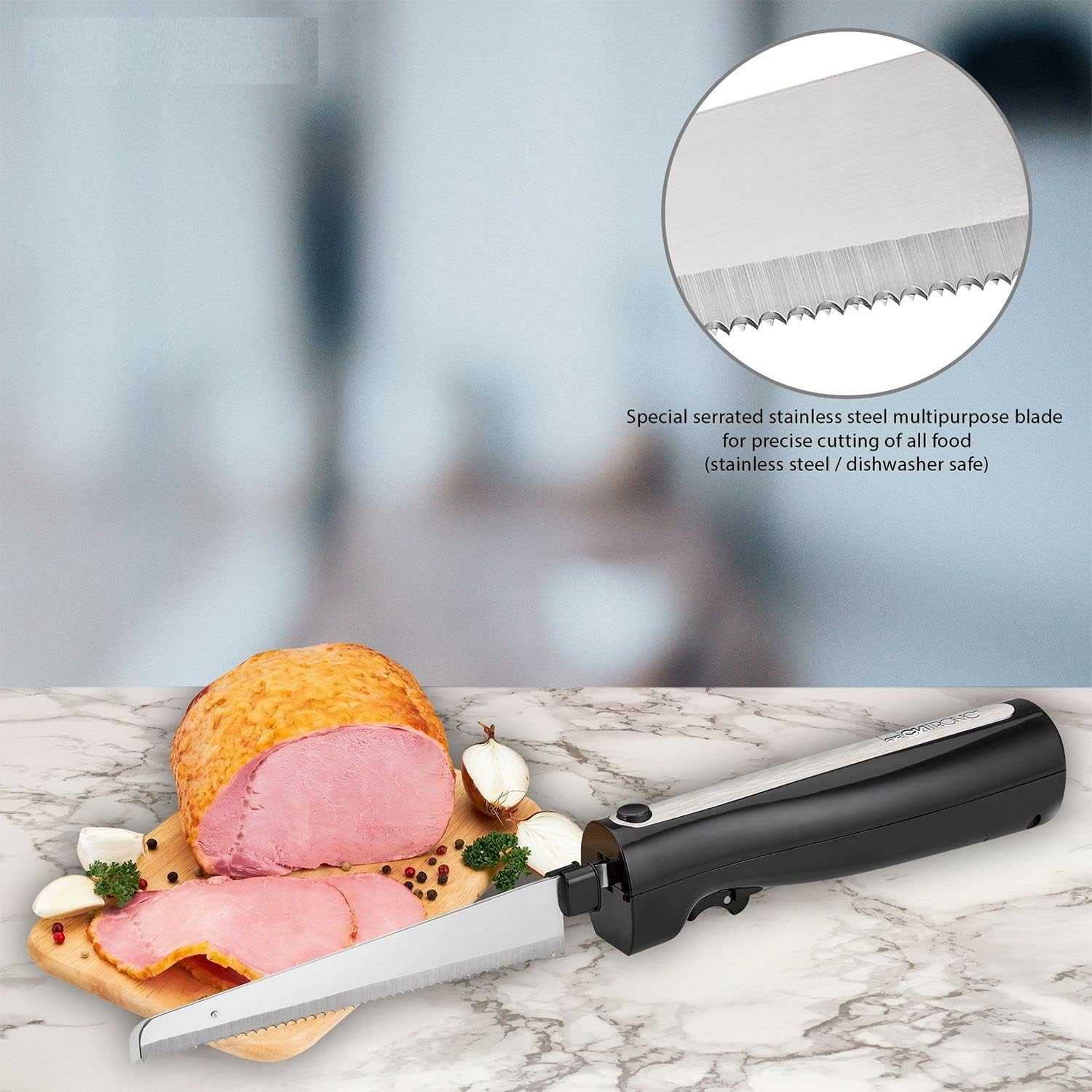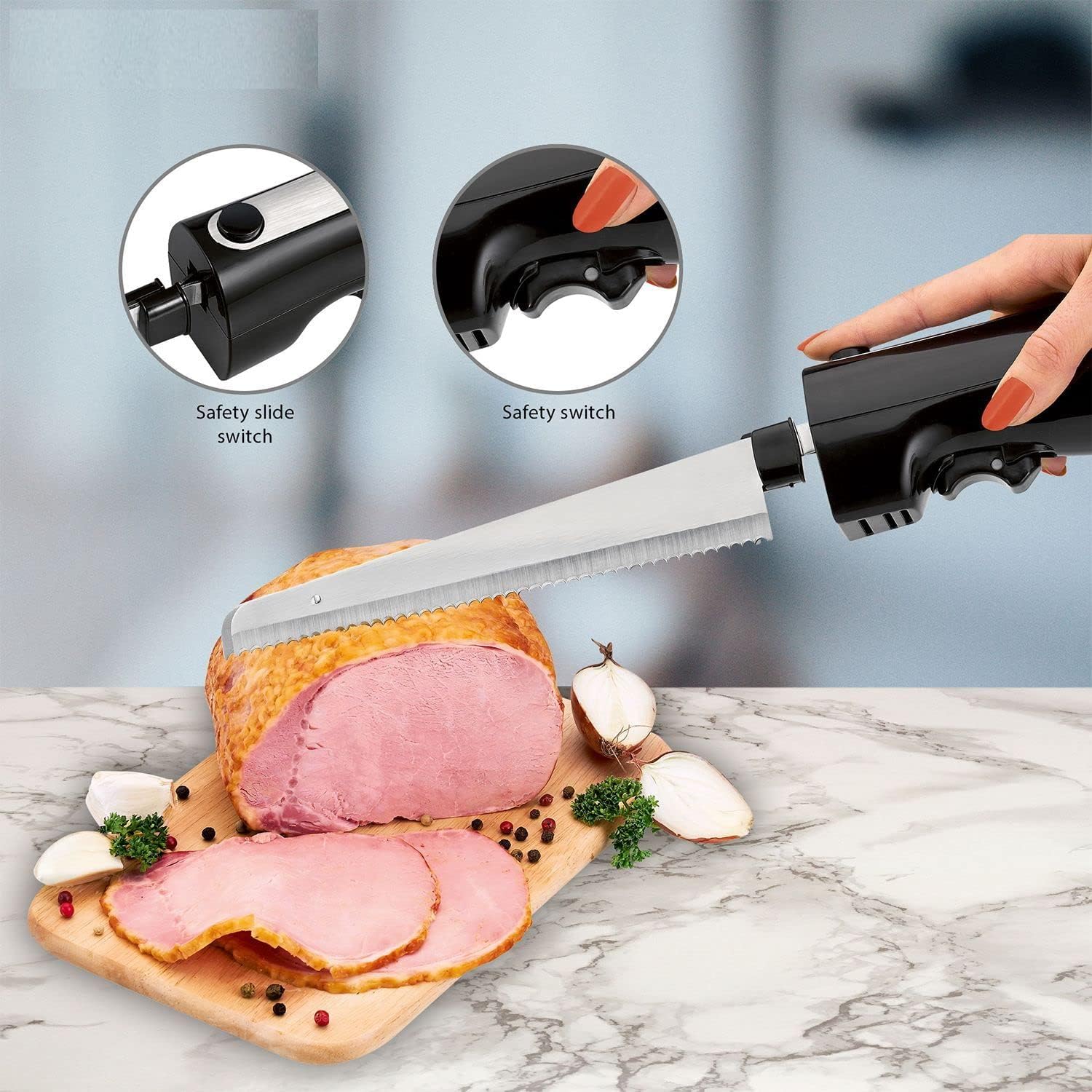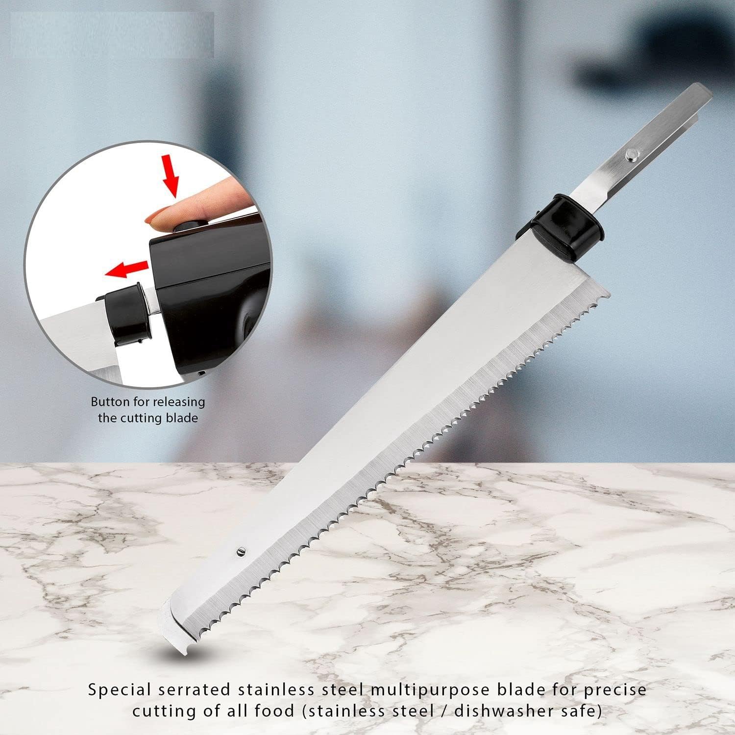 Благодарение на бутон за освобождаване, остриетата могат лесно да се свалят за почистване, ножът е устойчив на ръжда и подходящ за миене в съдомиялна машина. Електрическият нож се предлага с кутия за съхранение.